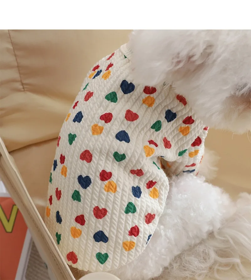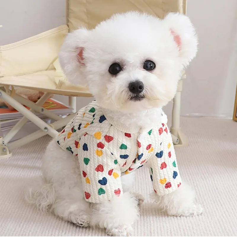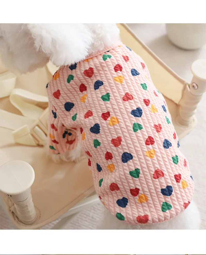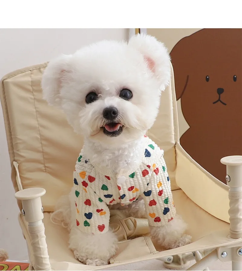 Lindo dulce amor rayas ropa para perros chaleco Snap Cardigan suéter Teddy Bichon otoño cálido invierno ropa para cachorros chaquetas para perros abrigo