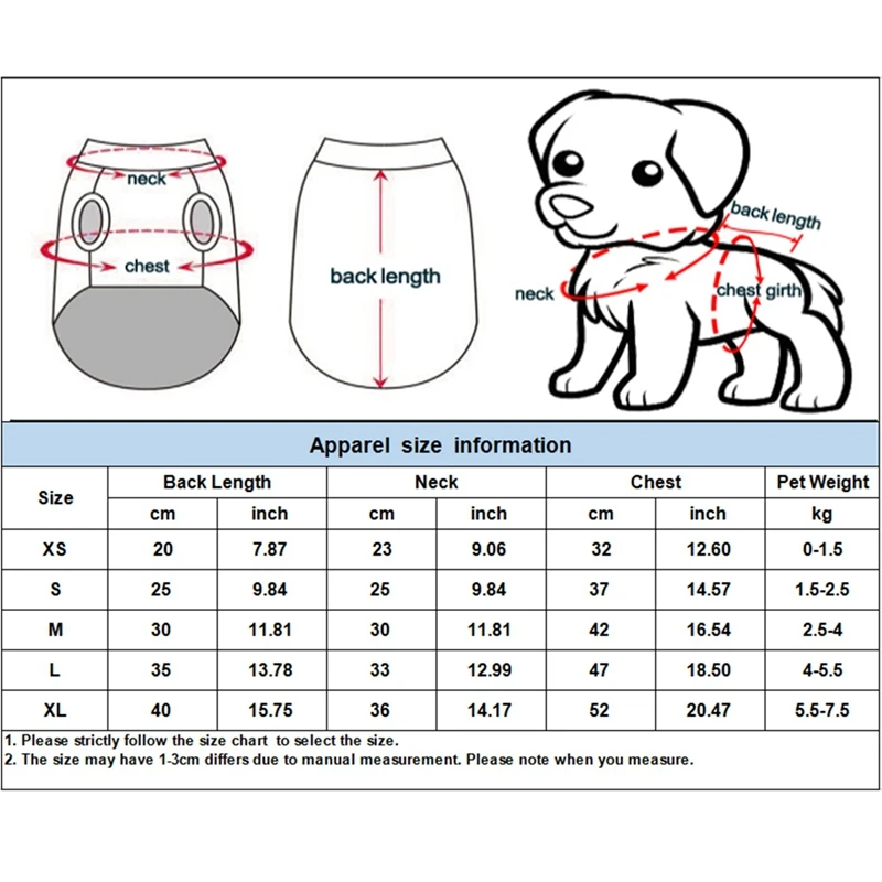 1.No apto para ninguna raza de perros mediana o grande.Mide a tu mascota y consulta la tabla de tallas antes de realizar el pedido, no solo el peso o la raza.Priorice el siguiente tamaño de senos.Si el valor medido está entre 2 tallas, elija la talla más grande.
