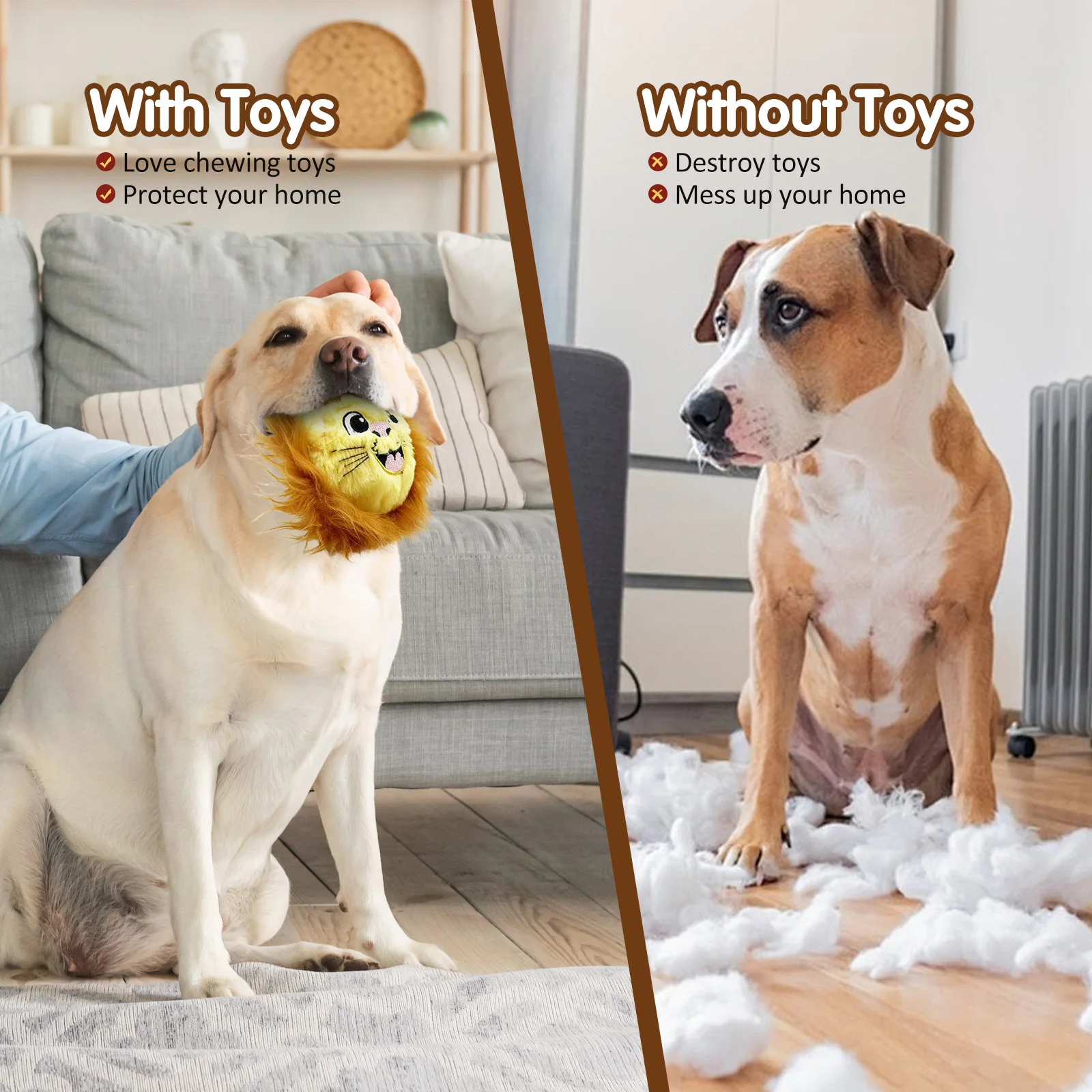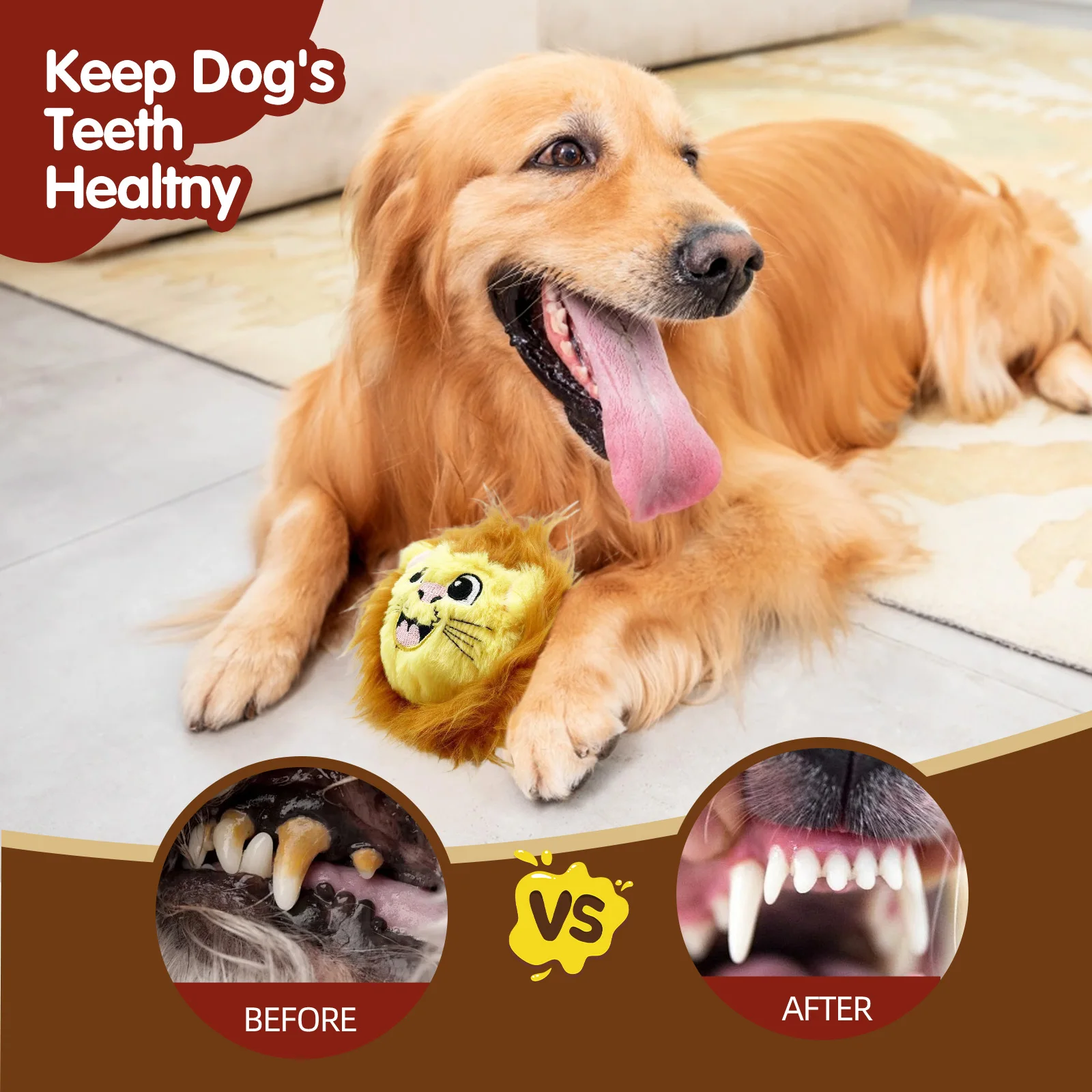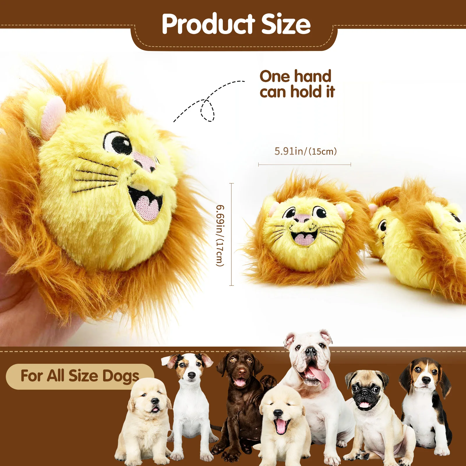 Lindo perro mascota de peluche con bola de púas, juguete con sonido, león amarillo alivia el aburrimiento y acompaña perros de tamaño mediano a grande