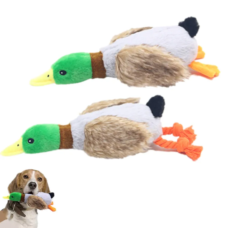 Lindo perro pequeño crudo de peluche, juguetes interactivos de cuerda de pato, juguete para perros con sonido resistente a mordeduras con sonajero chirriante para suministros para mascotas