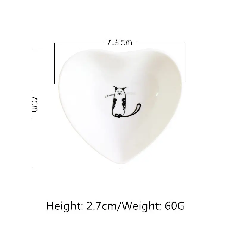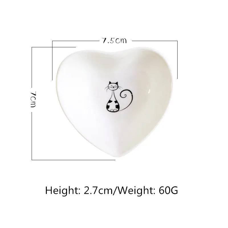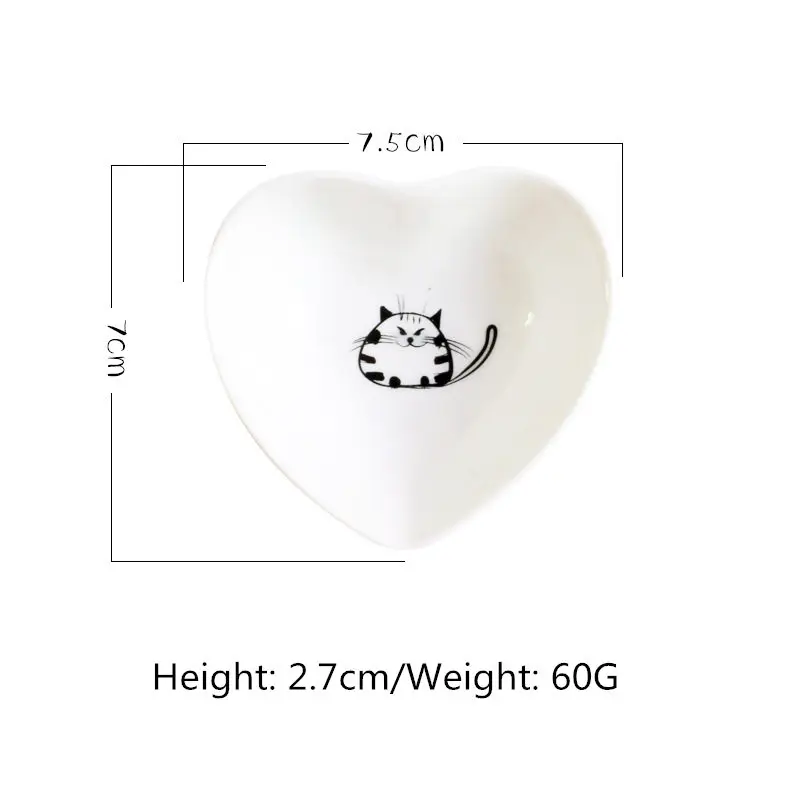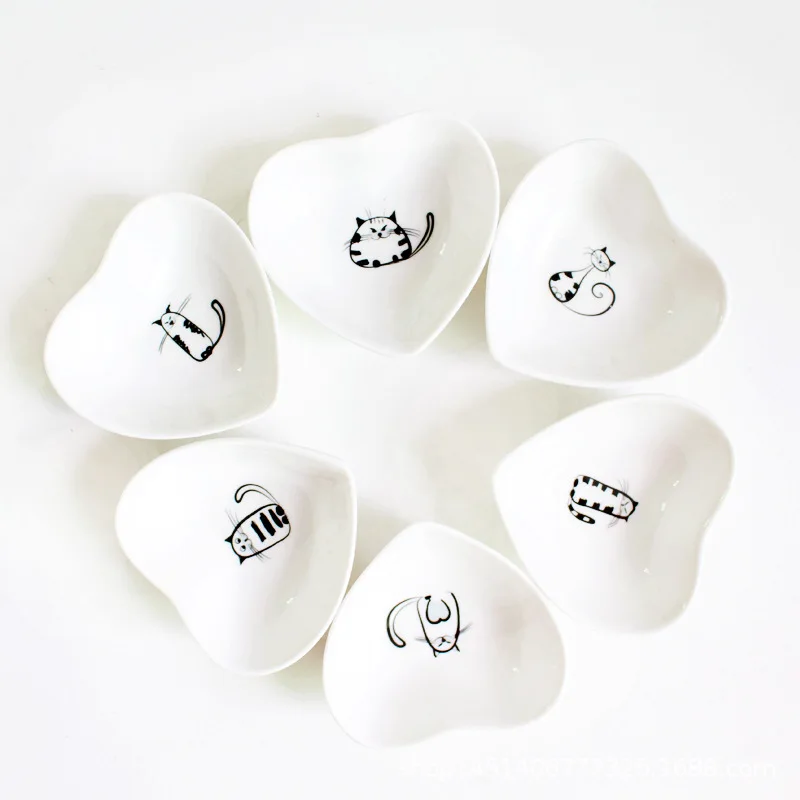 Lindo plato de corazón de melocotón pequeño de cerámica japonesa, estilos de dibujos animados de 6 colores para perros pequeños, tazón de gato, suministros para mascotas, accesorios