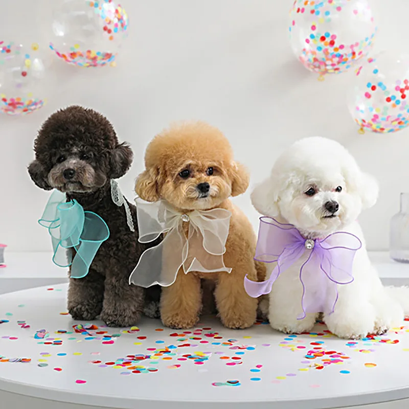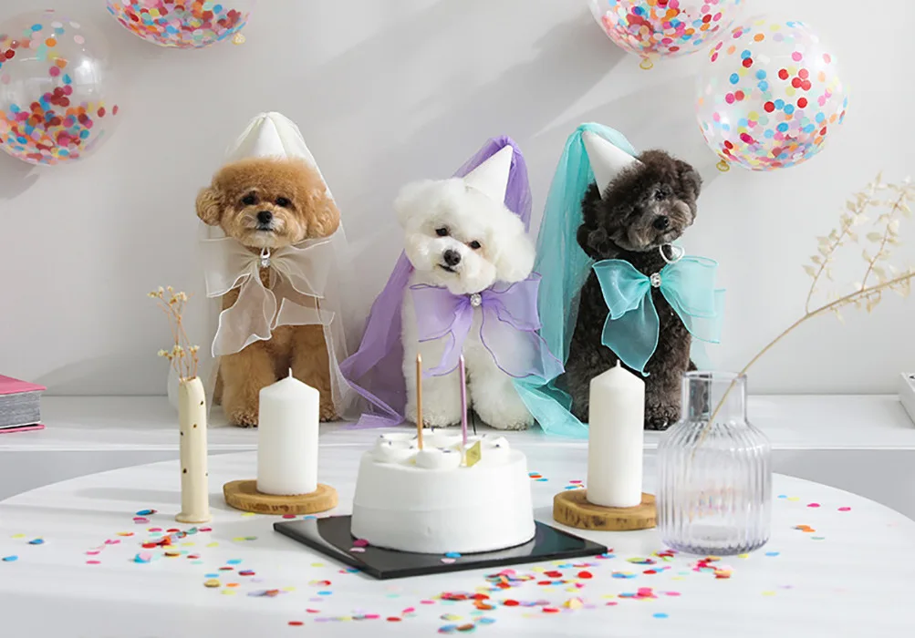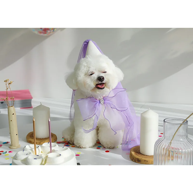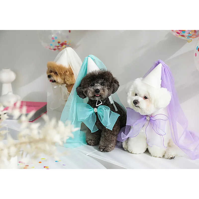 Lindo sombrero de fiesta de cumpleaños para perro, sombrero de boda, toalla de Saliva con lazo, bufanda triangular de peluche, babero de bolsillo, joyería para perro