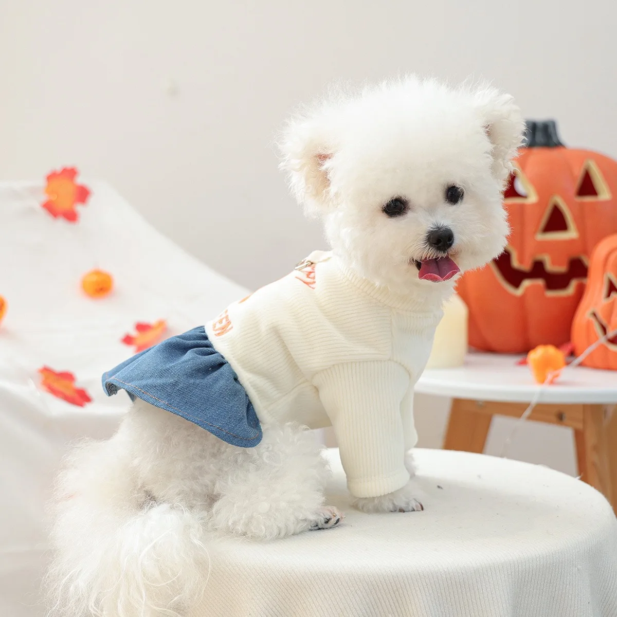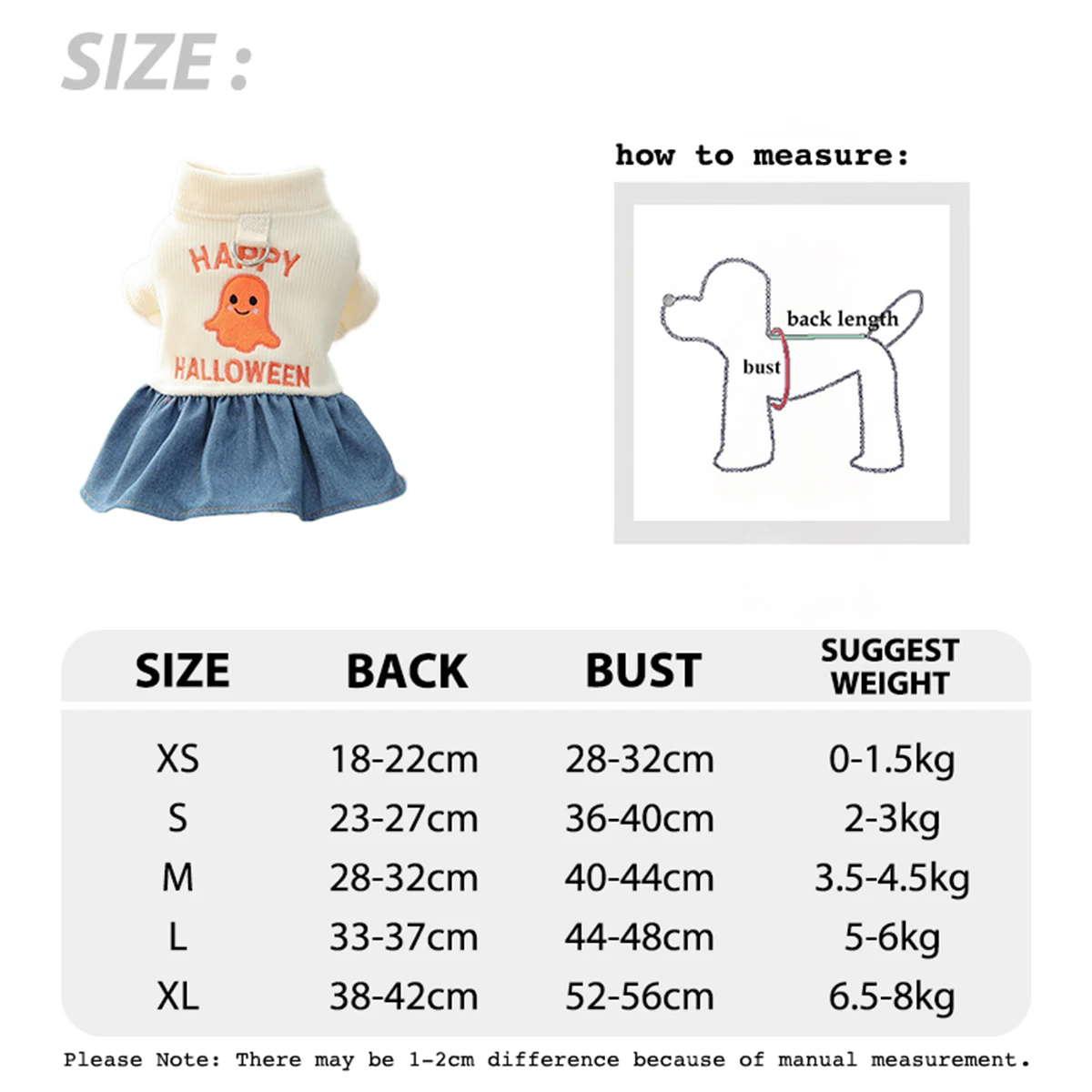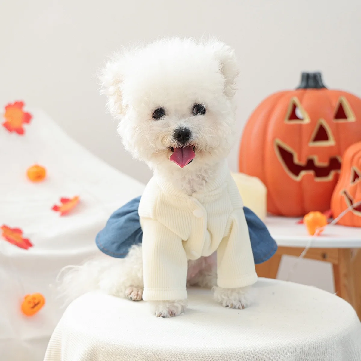 Lindo vestido de fantasma para perros pequeños y medianos, trajes felices de Halloween para Bulldog Francés, monos vaqueros de una pieza para Festival de niñas, monos de gato Cosplay