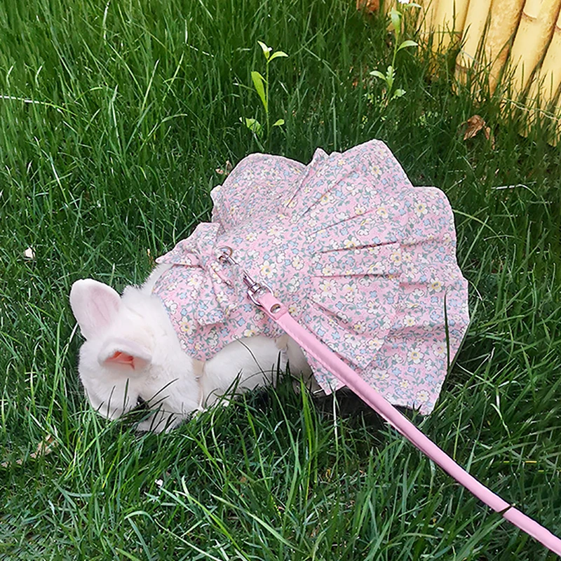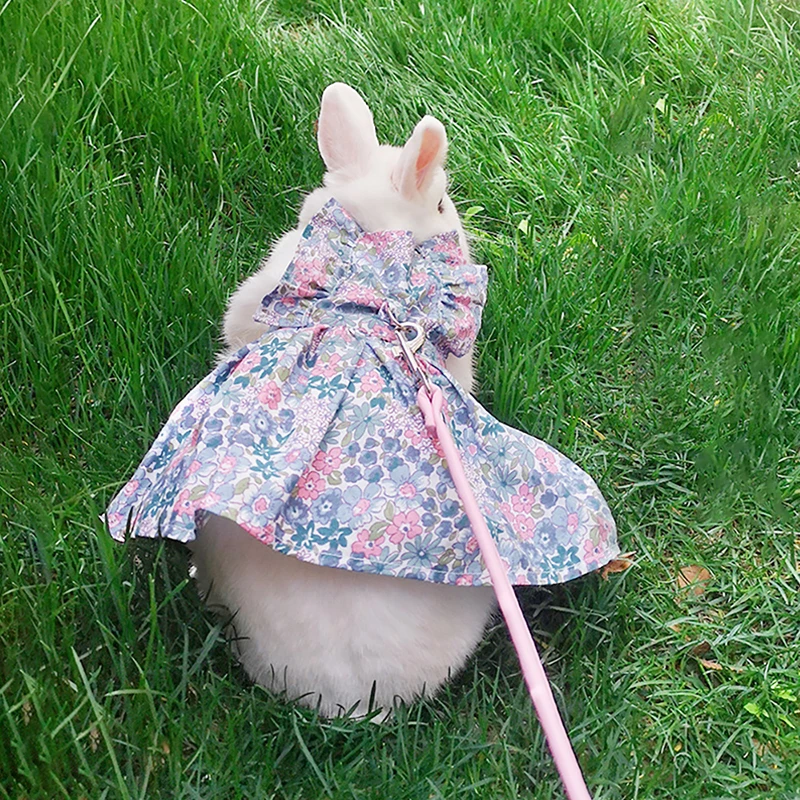 Lindo vestido Floral con correa para conejos, ropa de verano para mascotas, conjunto de arnés de conejito ajustable, vestidos antideslizantes de conejo de algodón suave