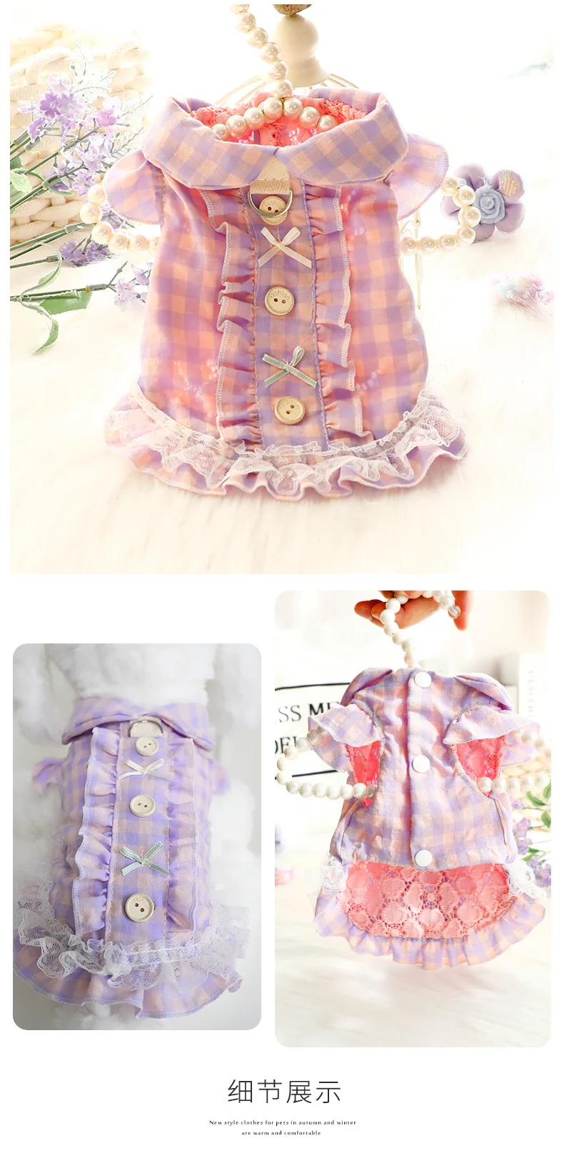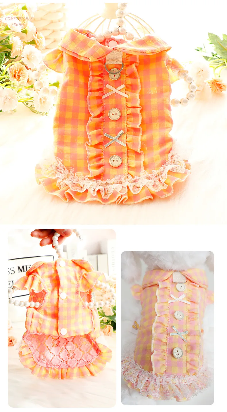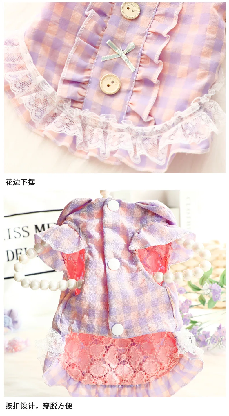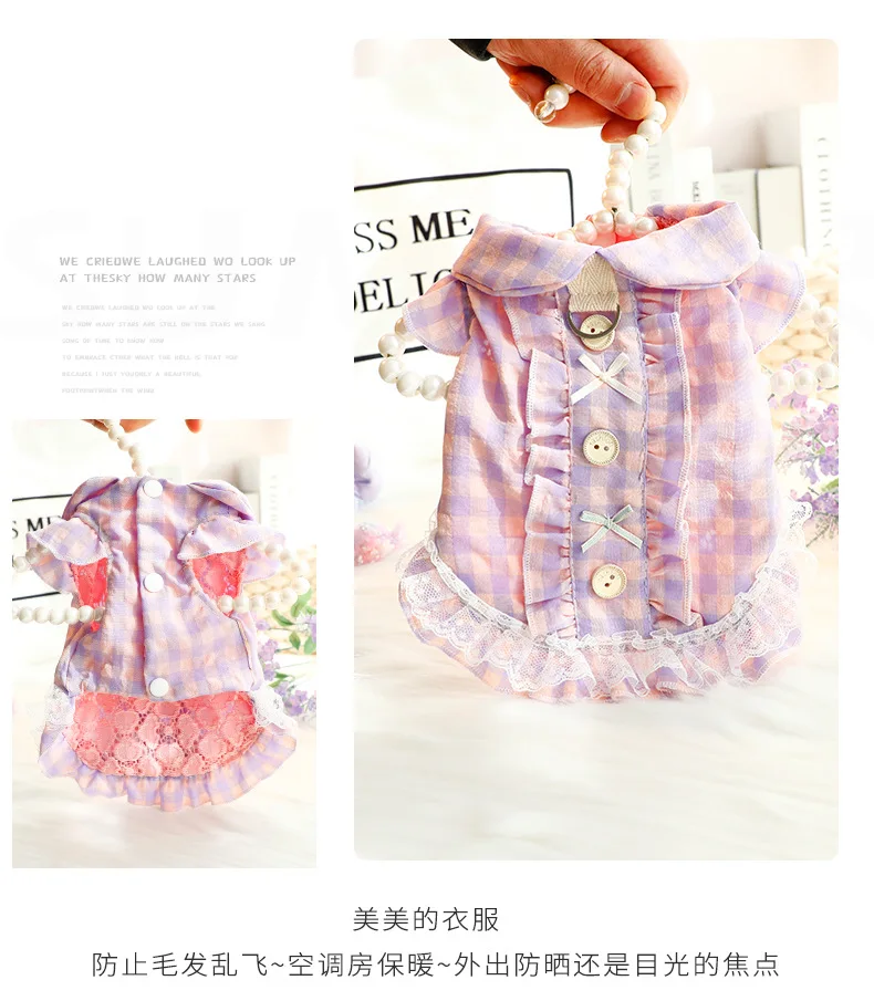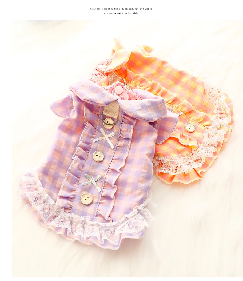 Lindo vestido de princesa con estampado de cachorro, camisas de algodón, ropa transpirable, diseño de encaje Adorable para la camisa de novia para perros pequeños