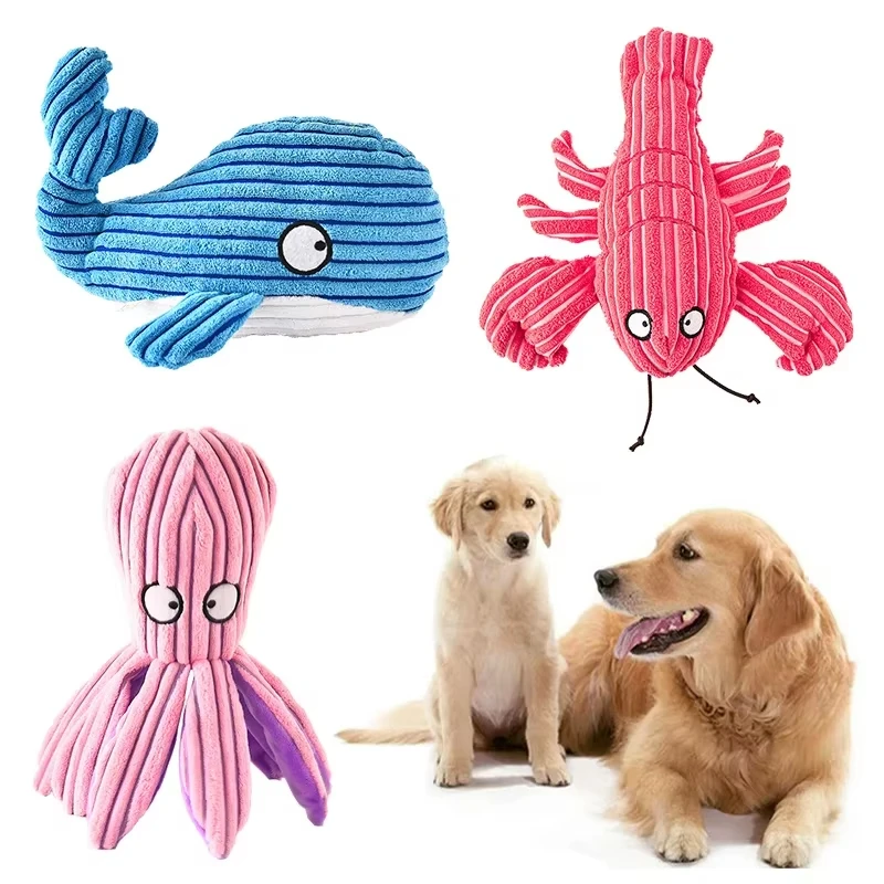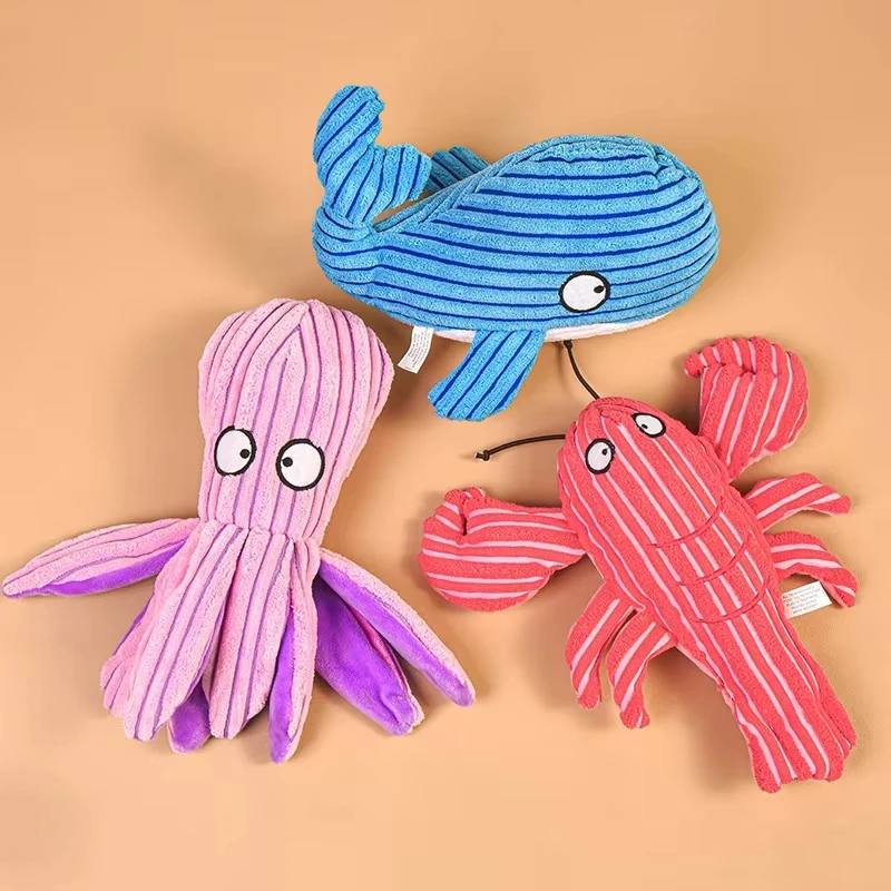 【Juguete para perro pulpo de ballena de langosta】Lindo juguete de peluche para perros, que utiliza un diseño realista de dibujos animados, para mantener interesado a su perro y satisfacer el deseo natural de masticar del perro.Este juguete para perros grande puede mantener compañía de su perro durante un rato divertido y es el juguete perfecto para perros.