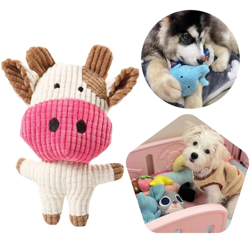 Lindos juguetes de peluche, juguetes para perros, chirridos, accesorios para mascotas, conejos de vaca, juguetes de peluche para perros, cachorros, masticar, silbidos chirriantes, juguetes para perros con corteza BB