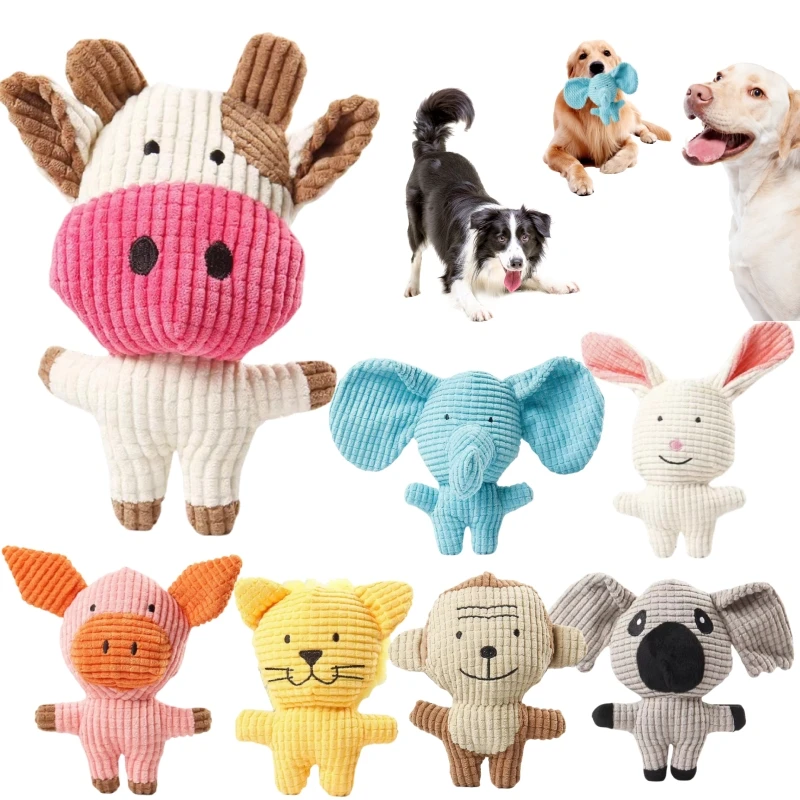 Lindos juguetes de peluche para perros, accesorios para mascotas, juguetes de peluche de conejo y vaca para masticar cachorros, silbido chirriante, juguetes para perros con corteza BB