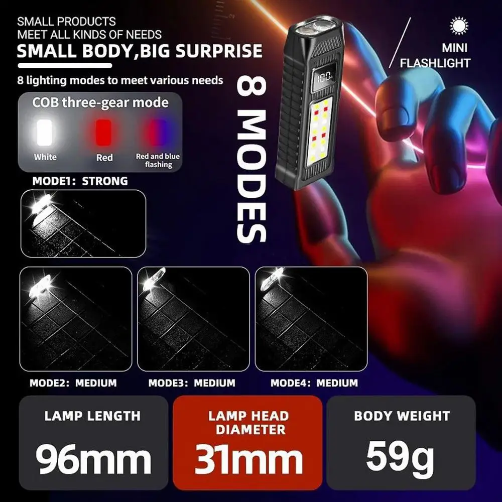 Diseñada con un imán resistente y una linterna de largo alcance, esta linterna portátil funciona bien para proporcionar iluminación confiable para acampar, hacer caminatas y explorar al aire libre.Brilla intensamente durante los paseos nocturnos, los viajes de pesca y las misiones de supervivencia, al mismo tiempo que ayuda con el mantenimiento del automóvil y las tareas diarias.Compacto pero eficaz, se adapta sin esfuerzo a cada situación que encuentres.