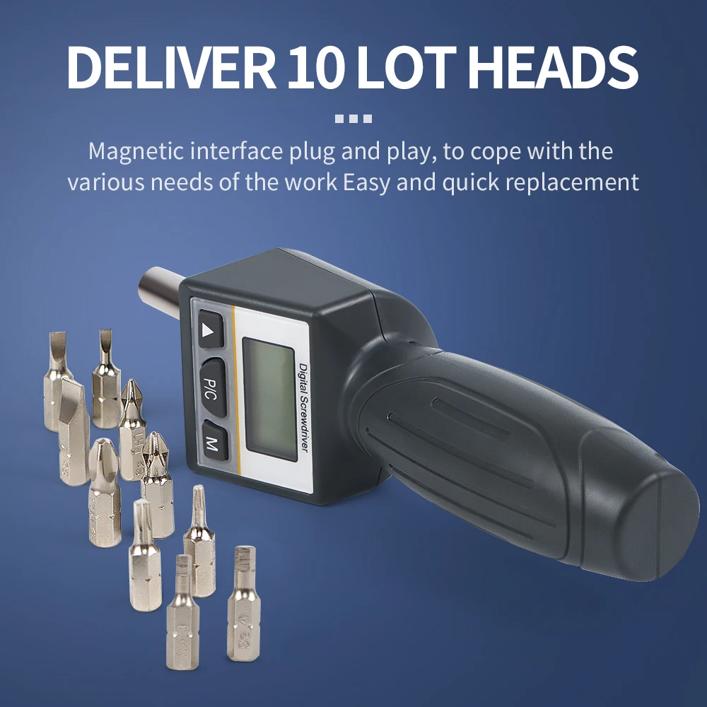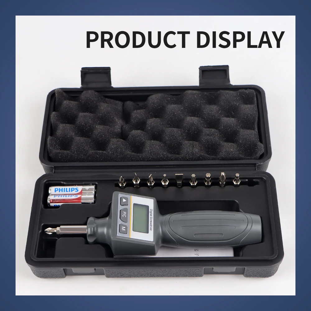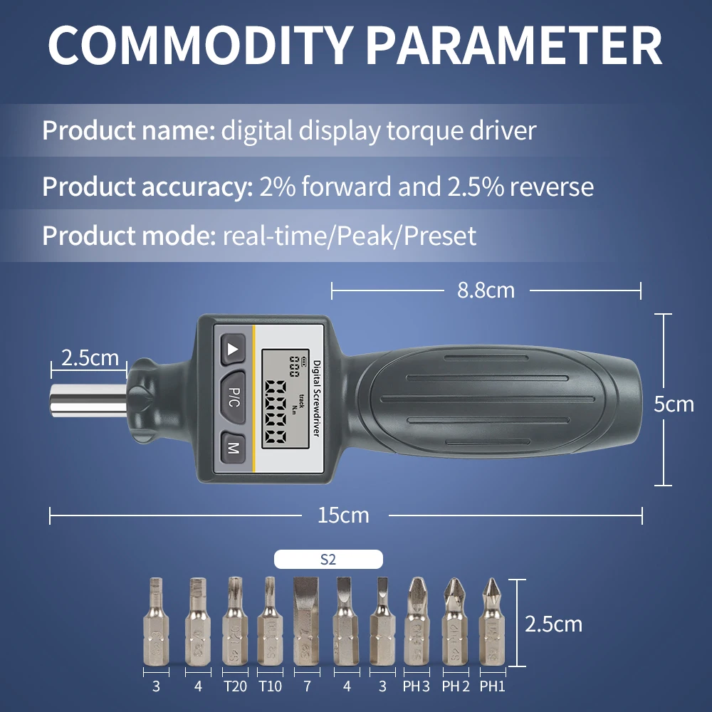 DNS-8N.m Llave dinamométrica Pantalla LCD Destornillador dinamométrico digital Controlador de torsión preestablecido Kit de reparación de vehículos de bicicleta con 10 cabezales de lote