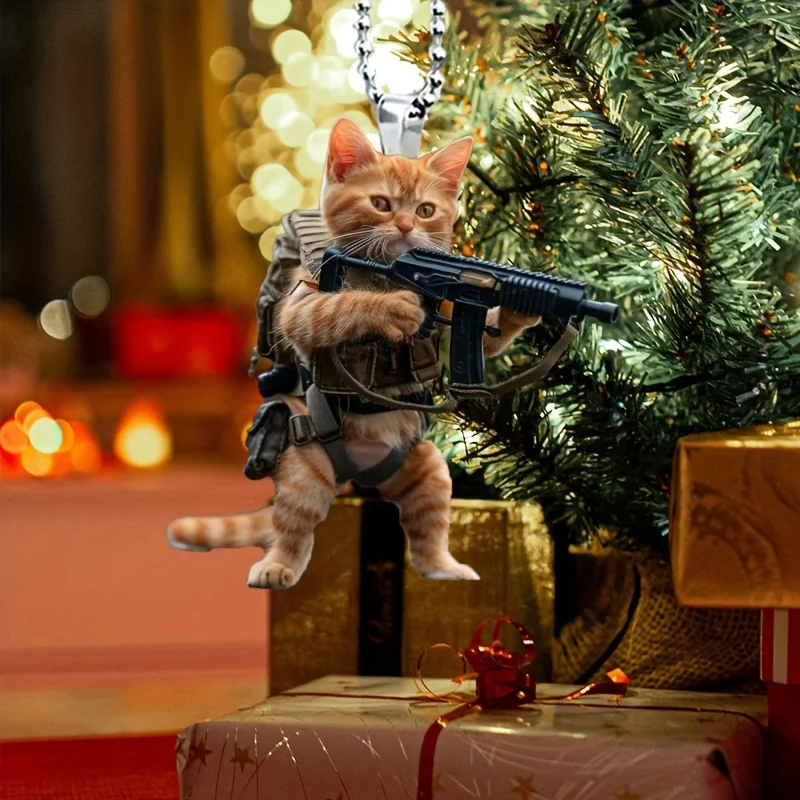 Llavero acrílico de gatito soldado, duradero, 2D, espejo de coche, colgante y bolso, llavero de gato bonito, regalo de Navidad para hombre, mujer y niña