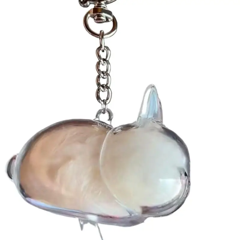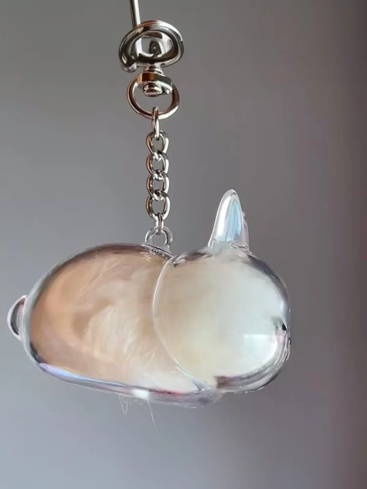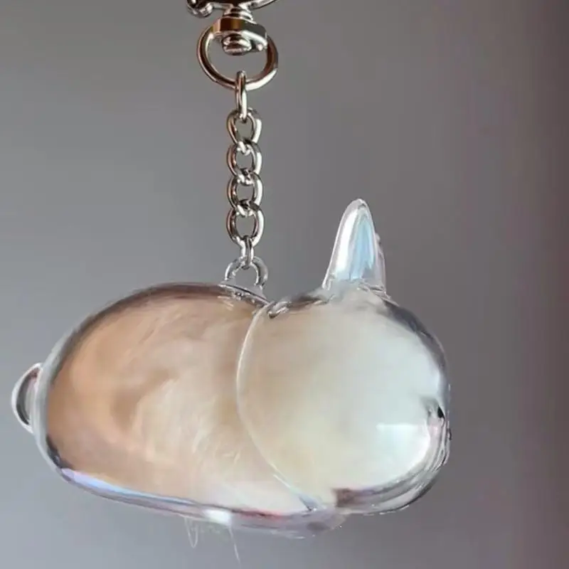Llavero con colgante transparente conmemorativo de pelo de mascota, organizador de cápsulas de almacenamiento de piel de conejo para mochila, bonita colección de recuerdos para mascotas