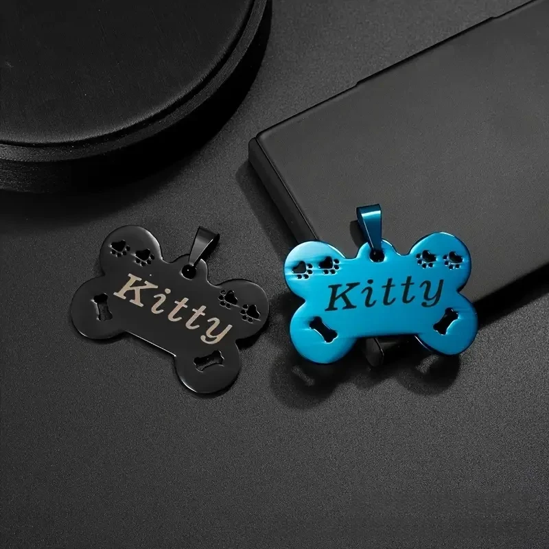 Llavero con etiqueta de identificación de mascota antipérdida en forma de hueso, nombre grabado personalizado, número de teléfono, collar de perro y cachorro, llavero con etiqueta, accesorio personalizado para pata
