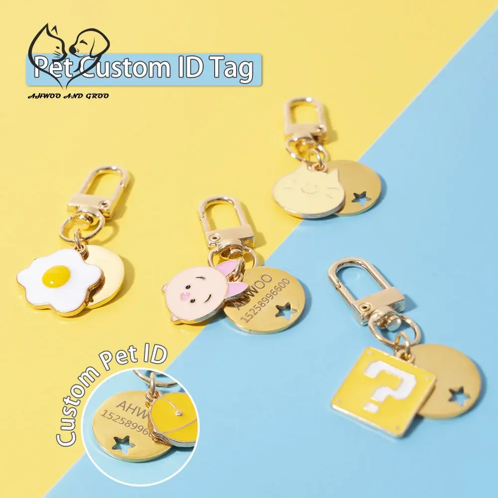 Llavero con etiqueta de identificación personalizada para mascotas, placa de identificación con grabado gratuito para Collar de perro y gato, suministros para mascotas