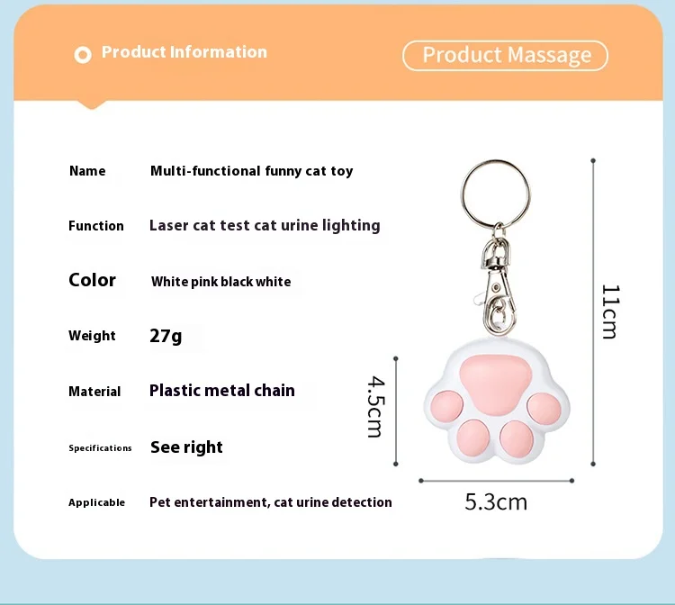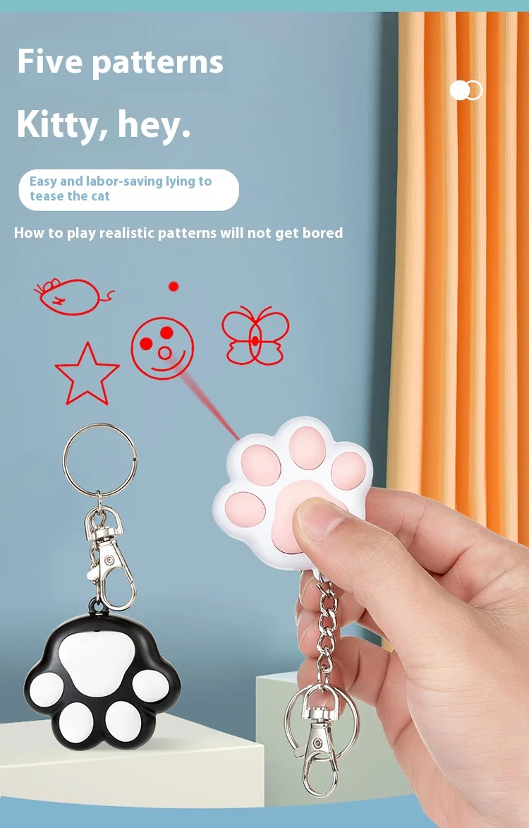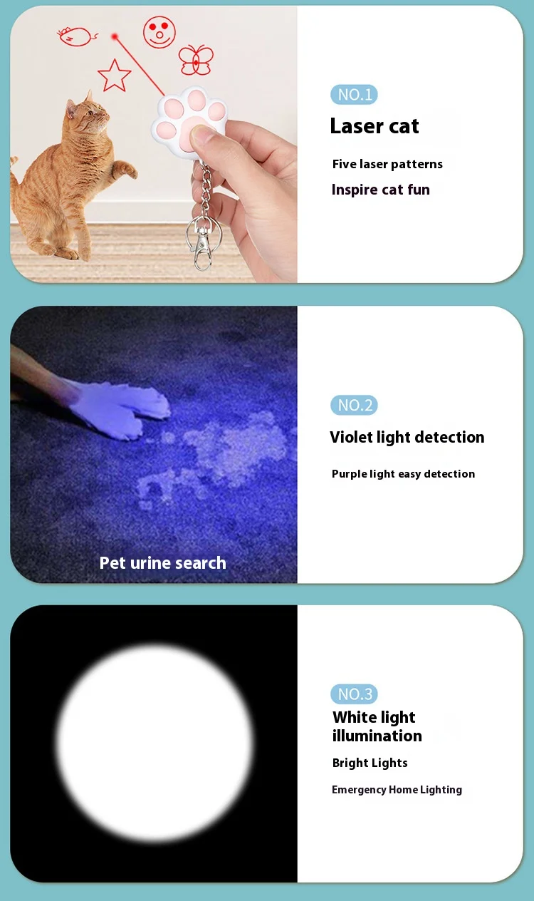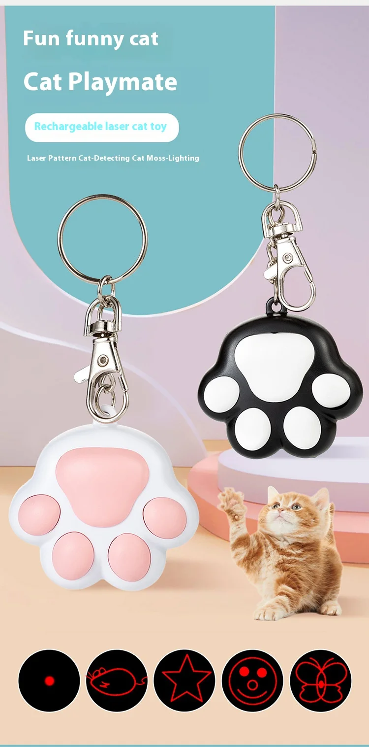 Llavero de juguete para gato con láser de carga, lindo llavero multifuncional para mascotas, iluminación de luz blanca púrpura con múltiples patrones