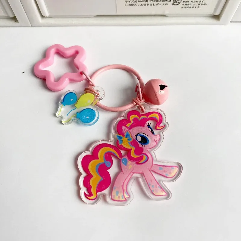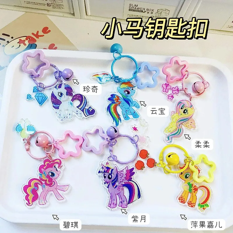 Llavero con purpurina My Little Pony Fluttershy Pinkie Pie, colgante de estrella acrílica, accesorios, llavero Kawaii de Anime, regalo de cumpleaños, 6 uds.