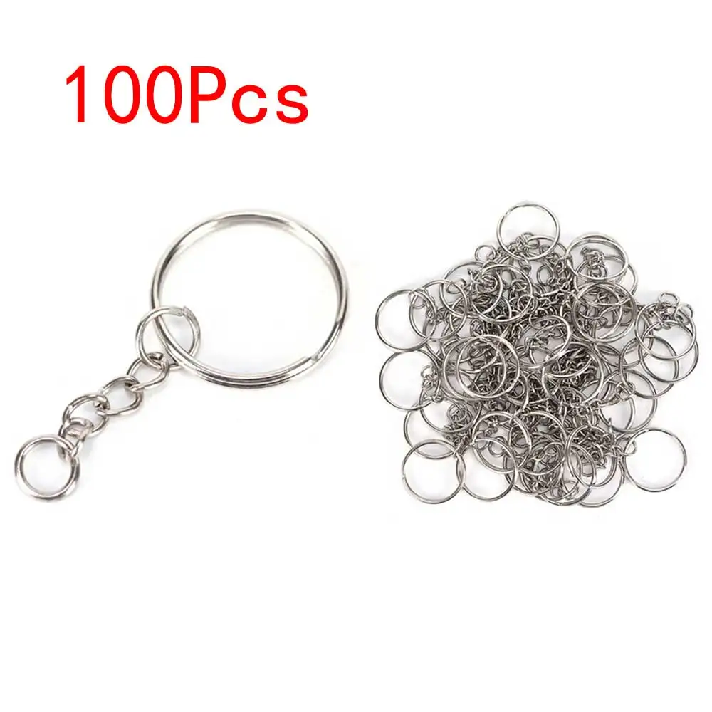 100 Uds. Llaveros de 25mm, accesorios de etiquetas, anillos de acero chapado, anillo dividido redondo para etiquetas de identificación de mascotas, accesorios de Collar de etiqueta para perros y gatos
