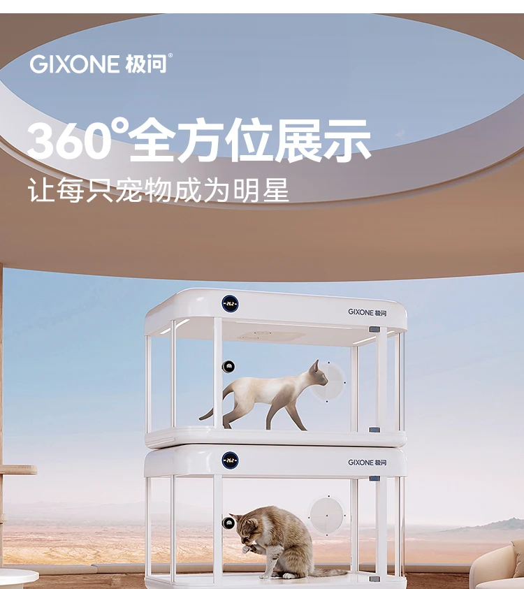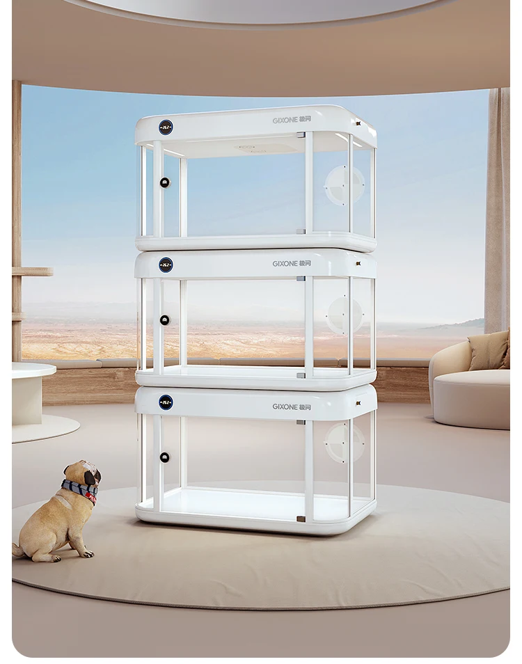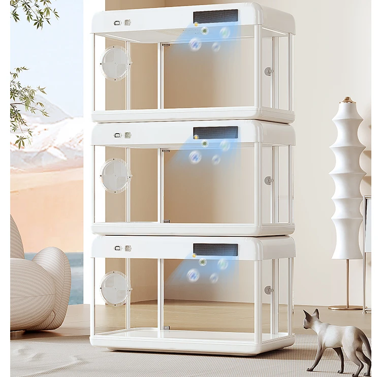 Lo último en cápsula espacial de lujo para mascotas, cabina totalmente inteligente para mascotas, caja de exhibición para gatos, integración del sistema de aire fresco para Villa para gatos en casa, jaula para gatos
