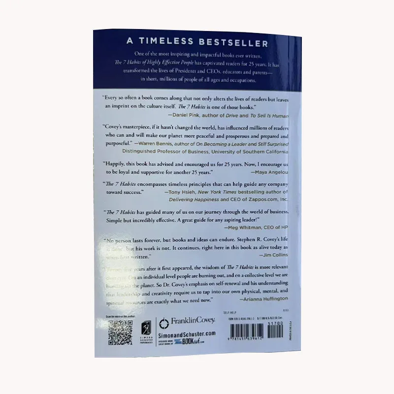 Los 7 hábitos de las personas altamente efectivas Libro original en inglés de Stephen R. Libro de lectura de gestión profesional Covey