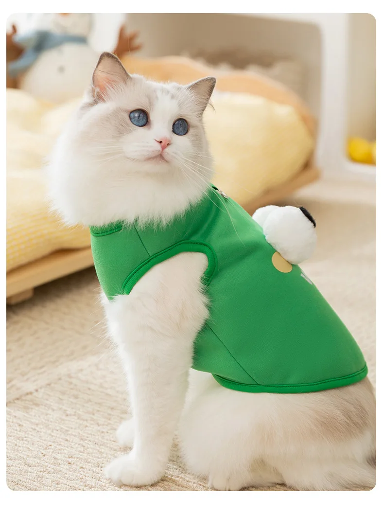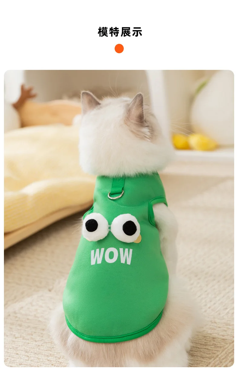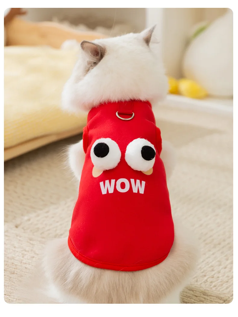 Los gatos mantienen el calor en otoño e invierno, felpa fina en principios de otoño, lindos ojos grandes, lindo suéter de tracción para cachorros, ropa para mascotas
