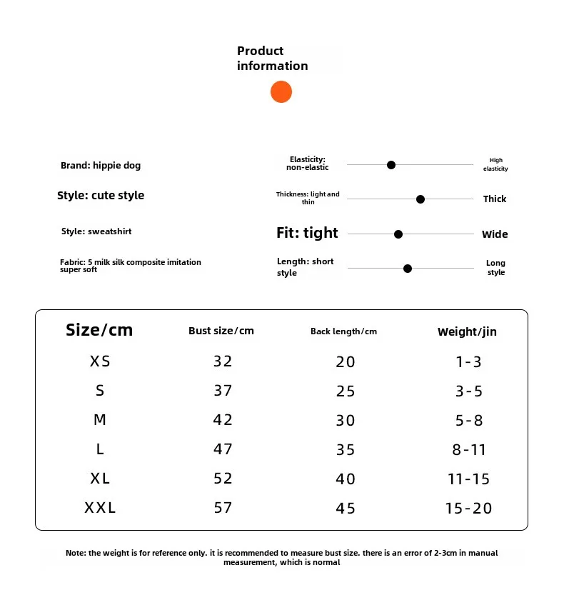 S (weight 1.5-2.5kg)