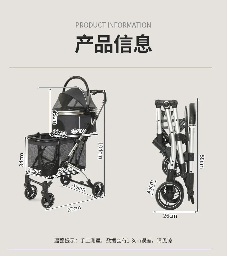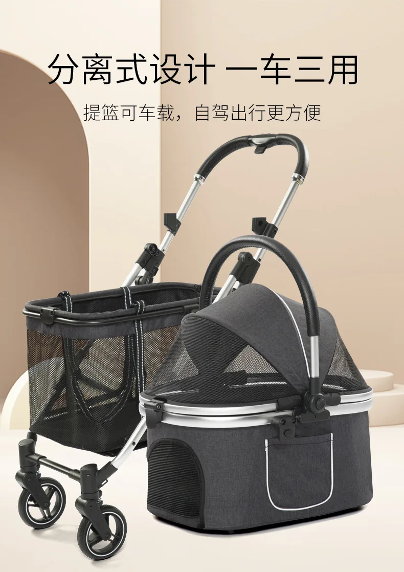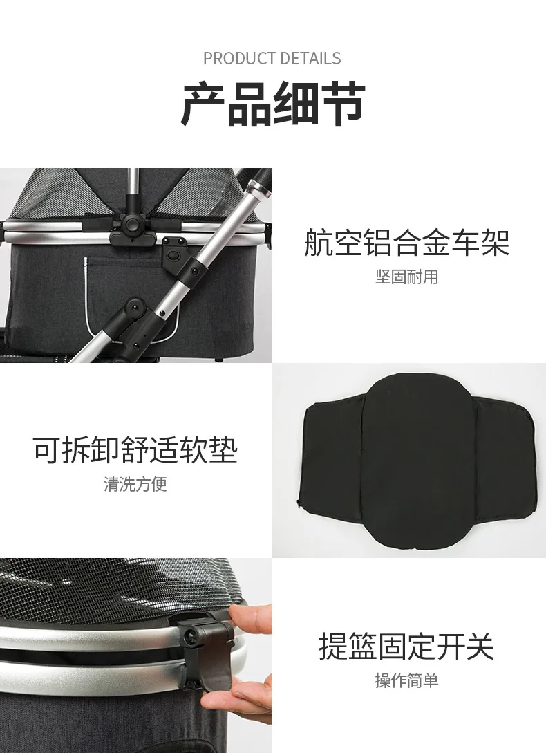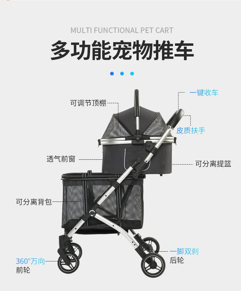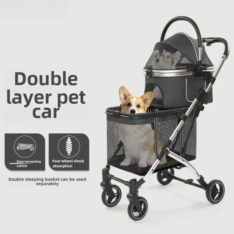 Los nuevos cochecitos para mascotas de dos pisos superiores e inferiores tienen cochecitos para mascotas de gran espacio y carritos múltiples para perros y gatos, carrito para perros