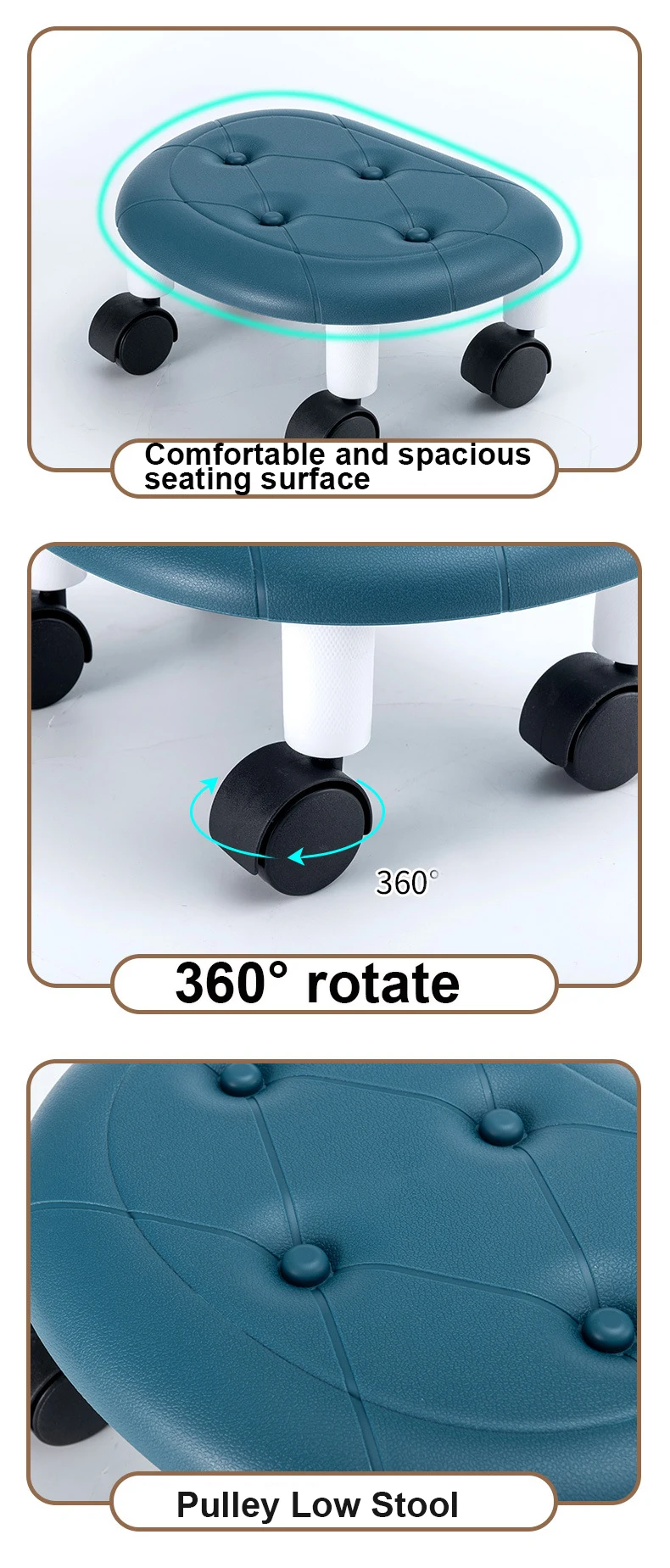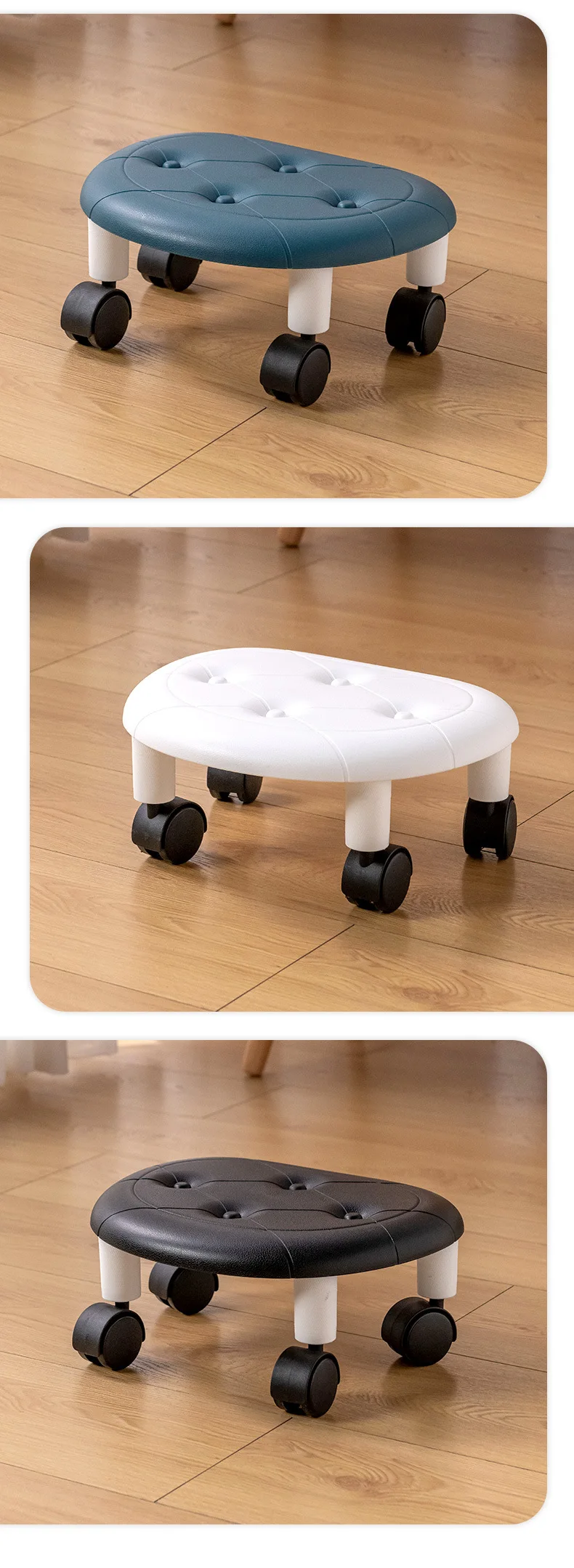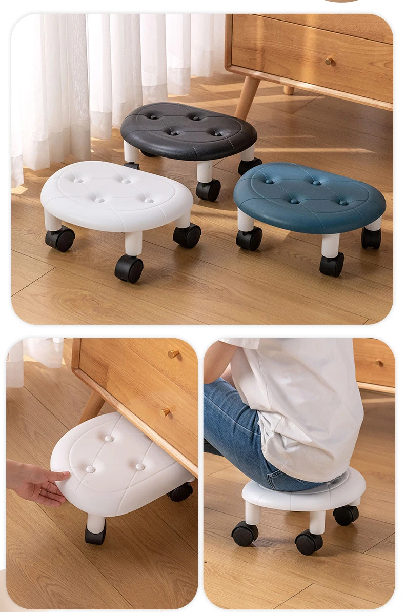 Low Stool with Pulley Thickening Sponge Cushion Household Shoe Changing Chair Waterproof Durable Leather Portable Circular Stool