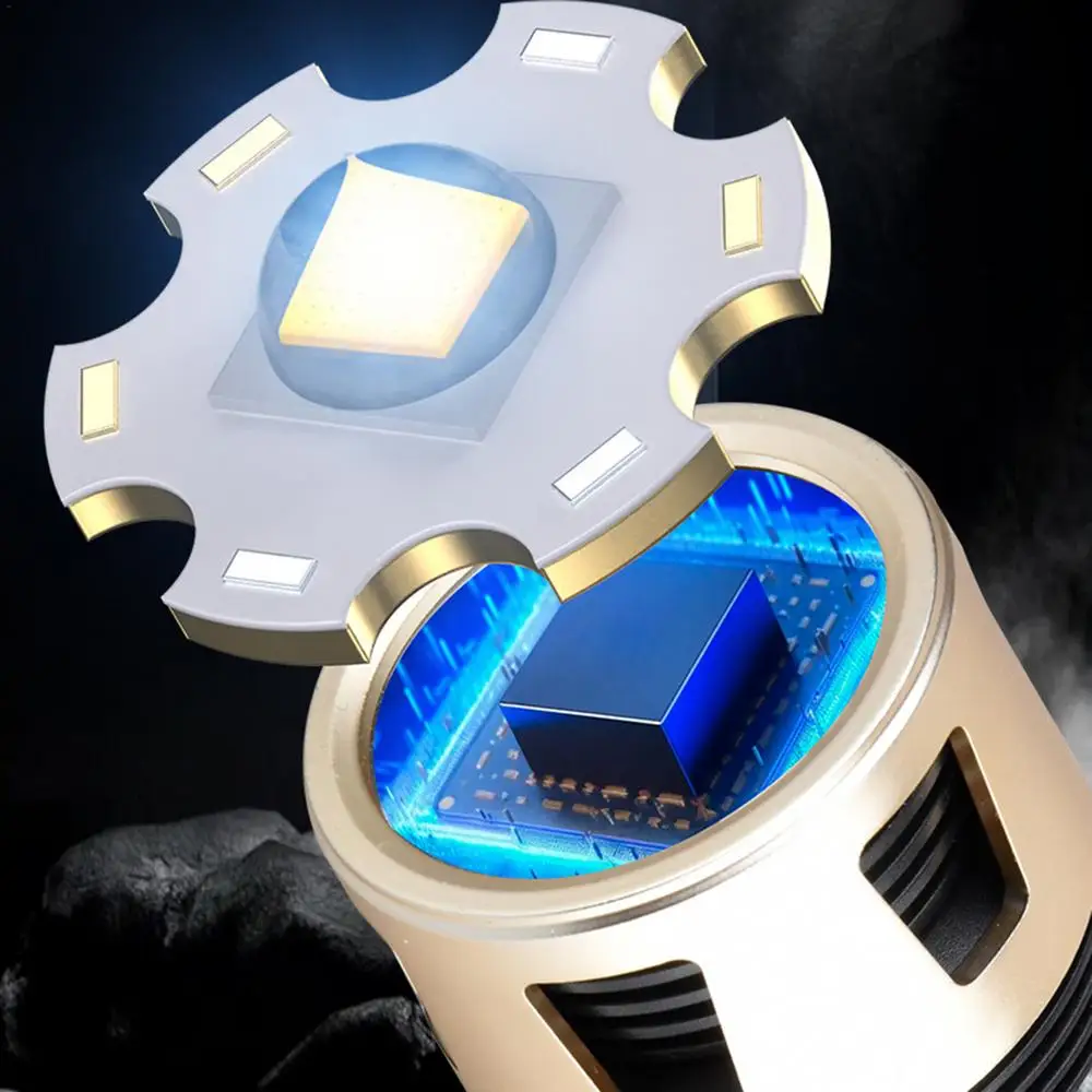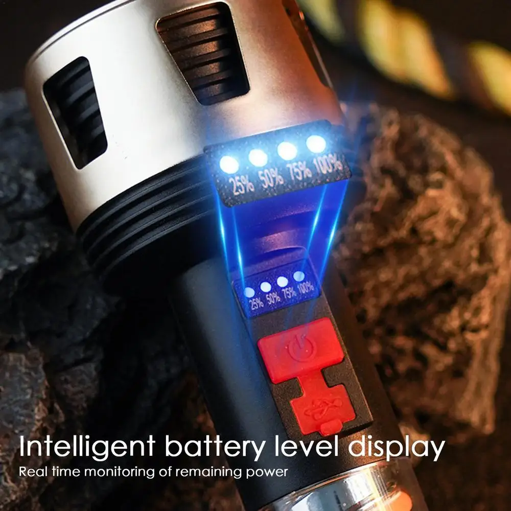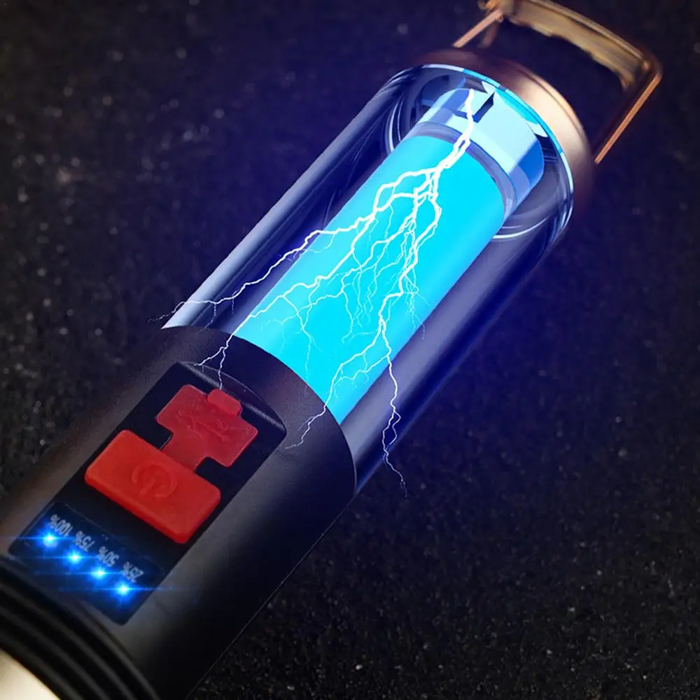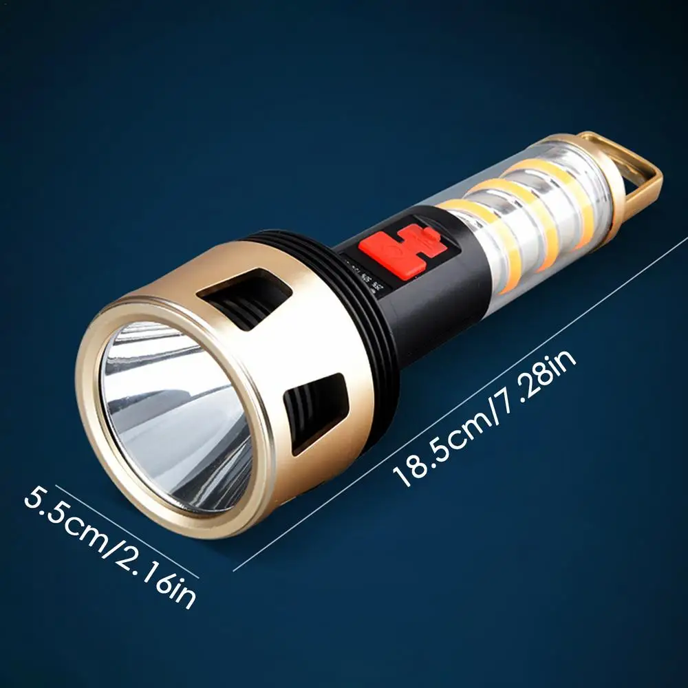 Ilumina tu viaje de camping con nuestra linterna LED recargable. Con cuatro niveles de indicador de potencia LED, la difusión uniforme de luz de 360 grados proporciona una fuente de luz brillante y estable. Lluvia. No hay problema. Nuestras linternas se pueden iluminar normalmente bajo la lluvia. Con una batería de larga duración, tendrás luz toda la noche.