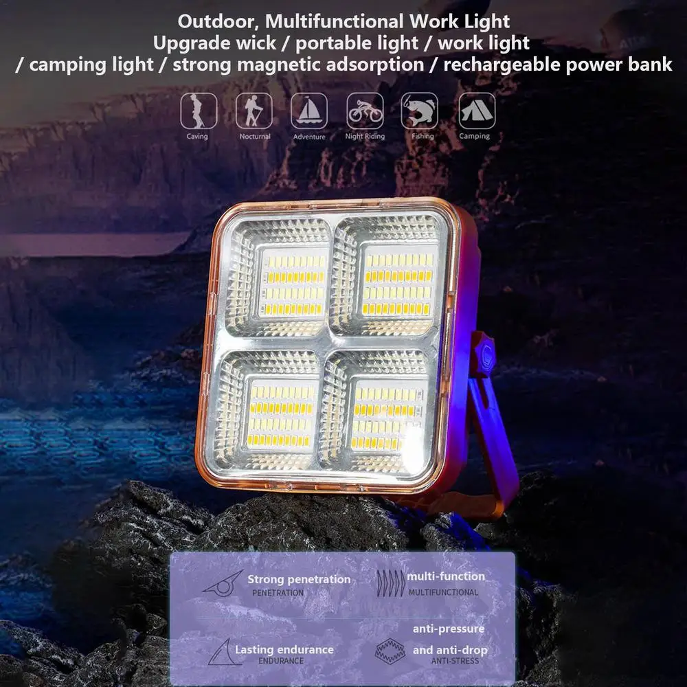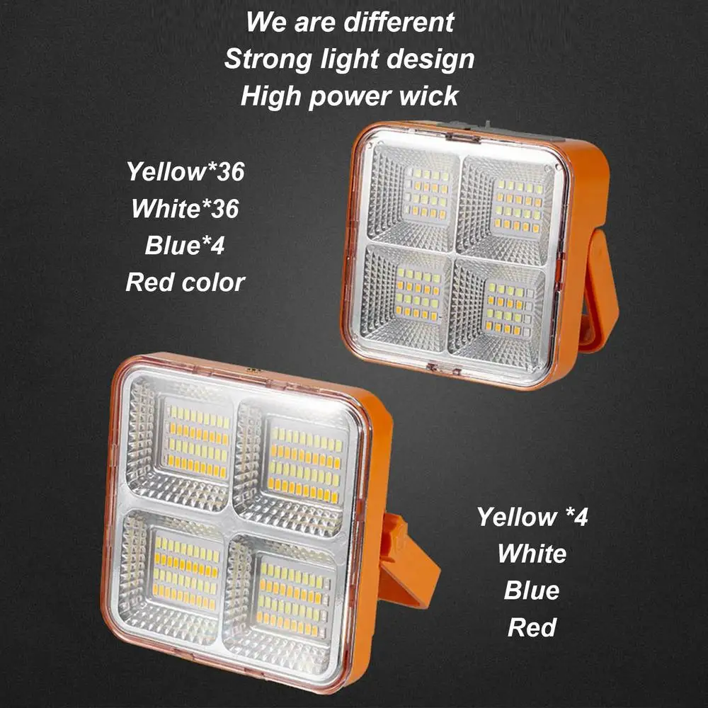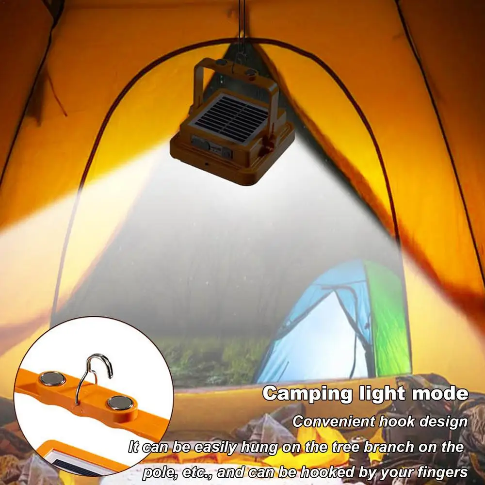 3. Amplia aplicabilidad: Ideal para entusiastas del aire libre, esta luz solar para acampar, con su mango de ABS giratorio 180 E imanes potentes, le asegura una luz brillante y confiable para acampar o reparaciones, adaptable a cualquier situación.