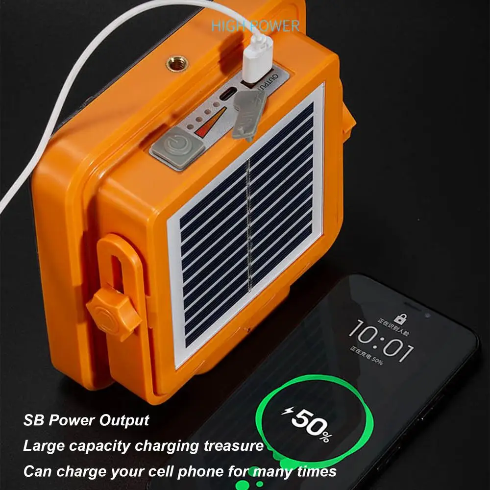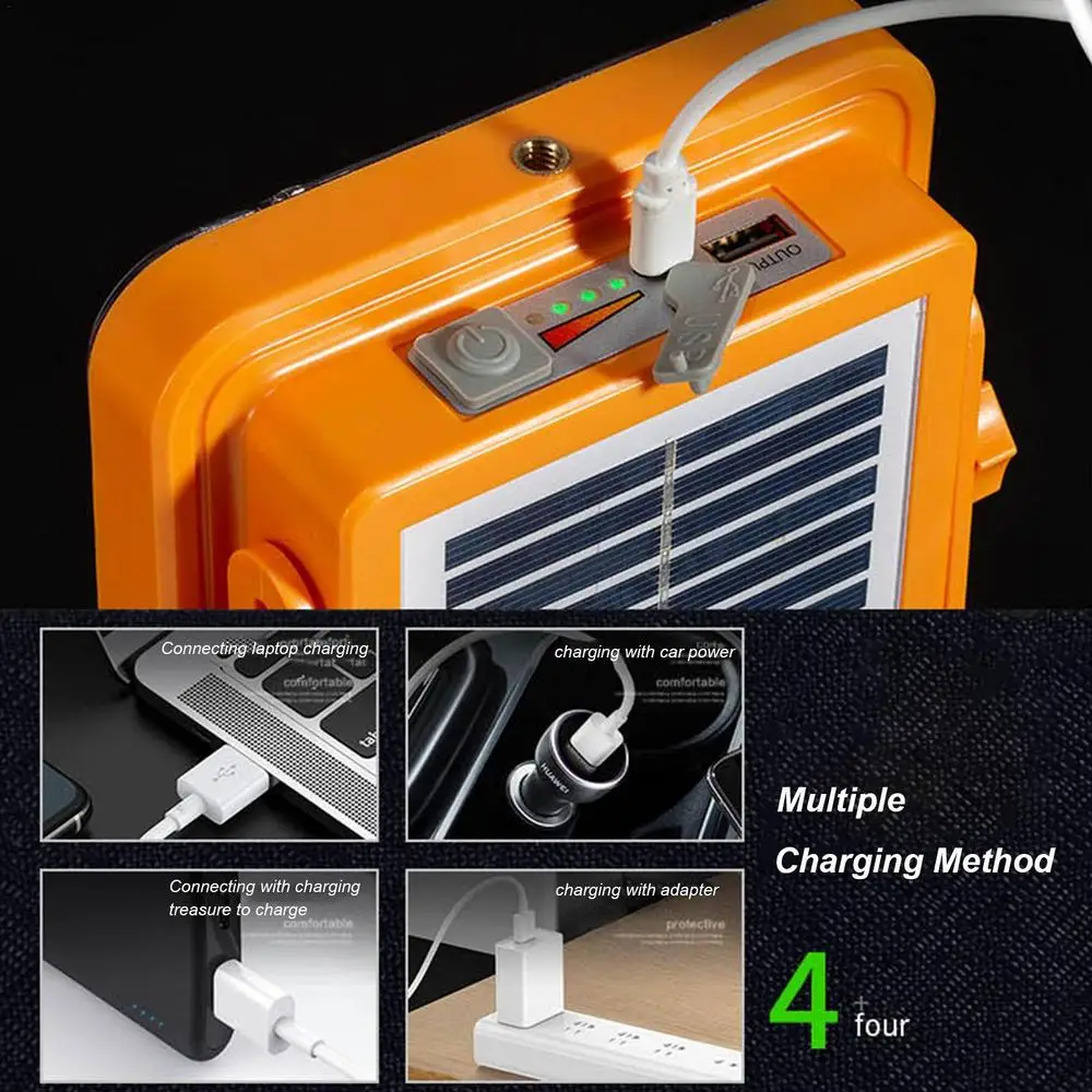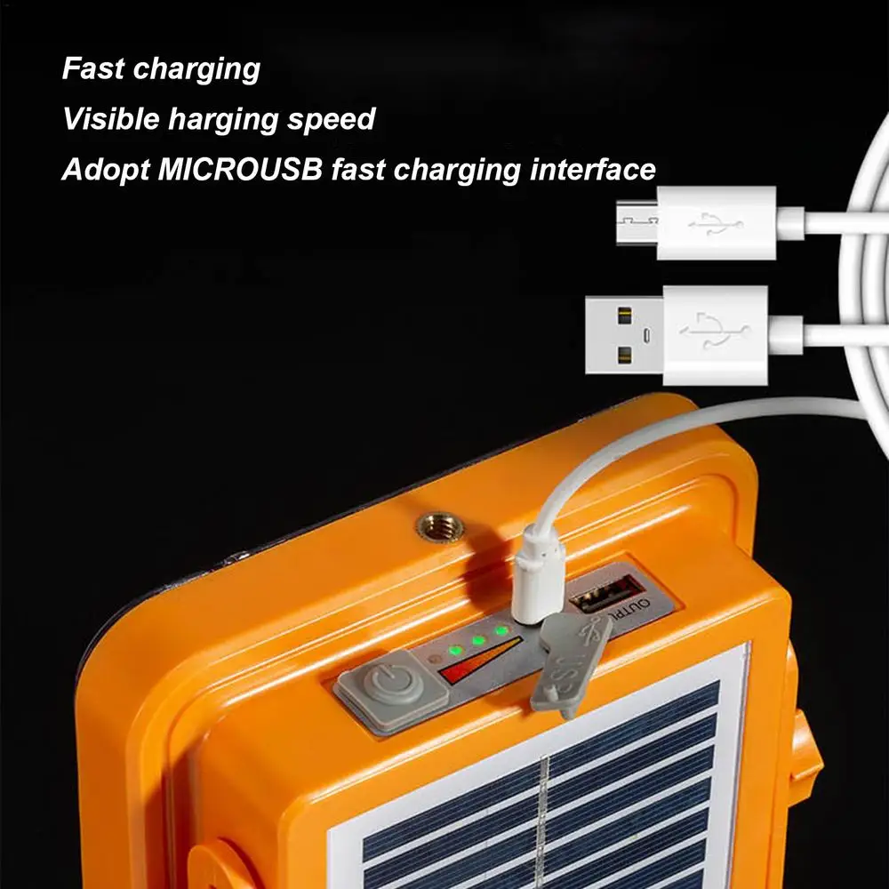 2. Eficiencia solar: Diga adiós a la carga tradicional con nuestra luz solar para acampar. Equipado con paneles solares de alta eficiencia, absorbe rápidamente la luz solar y la convierte en electricidad, proporcionando energía eficiente y sostenible para sus aventuras al aire libre.