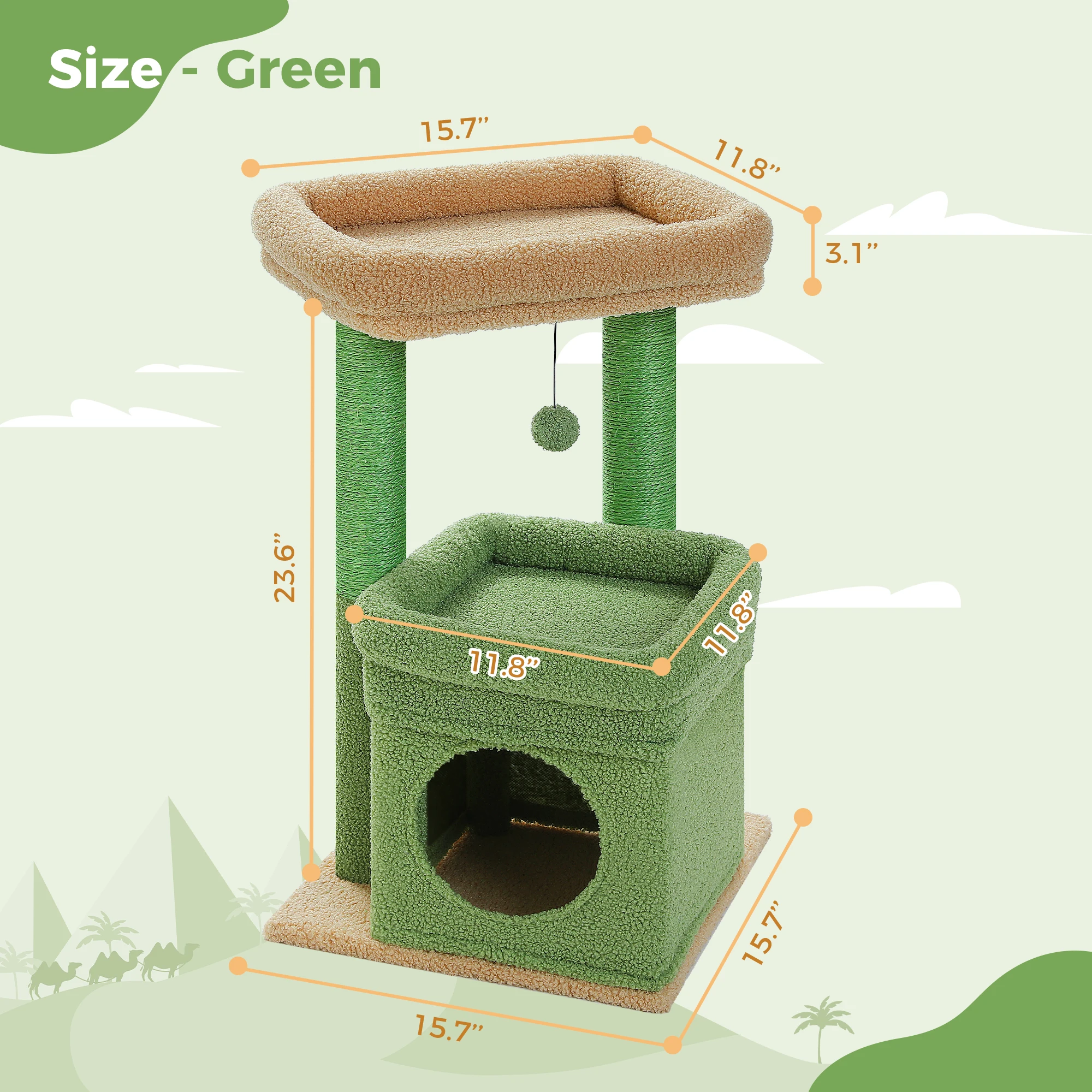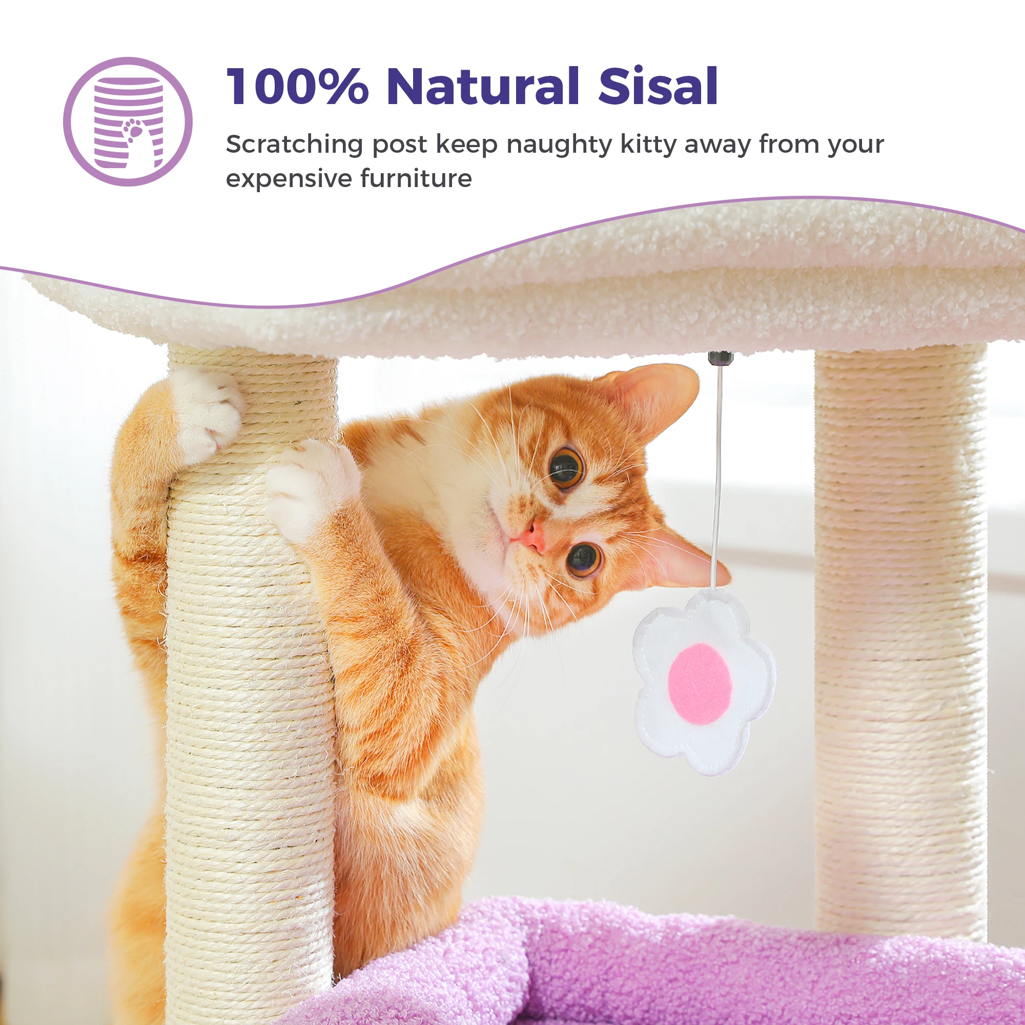 Torre de árbol para gatos de interior, lujosa y acogedora, posos de Sisal Natural, pompón de felpa suave, Ideal, pequeño retiro felino divertido