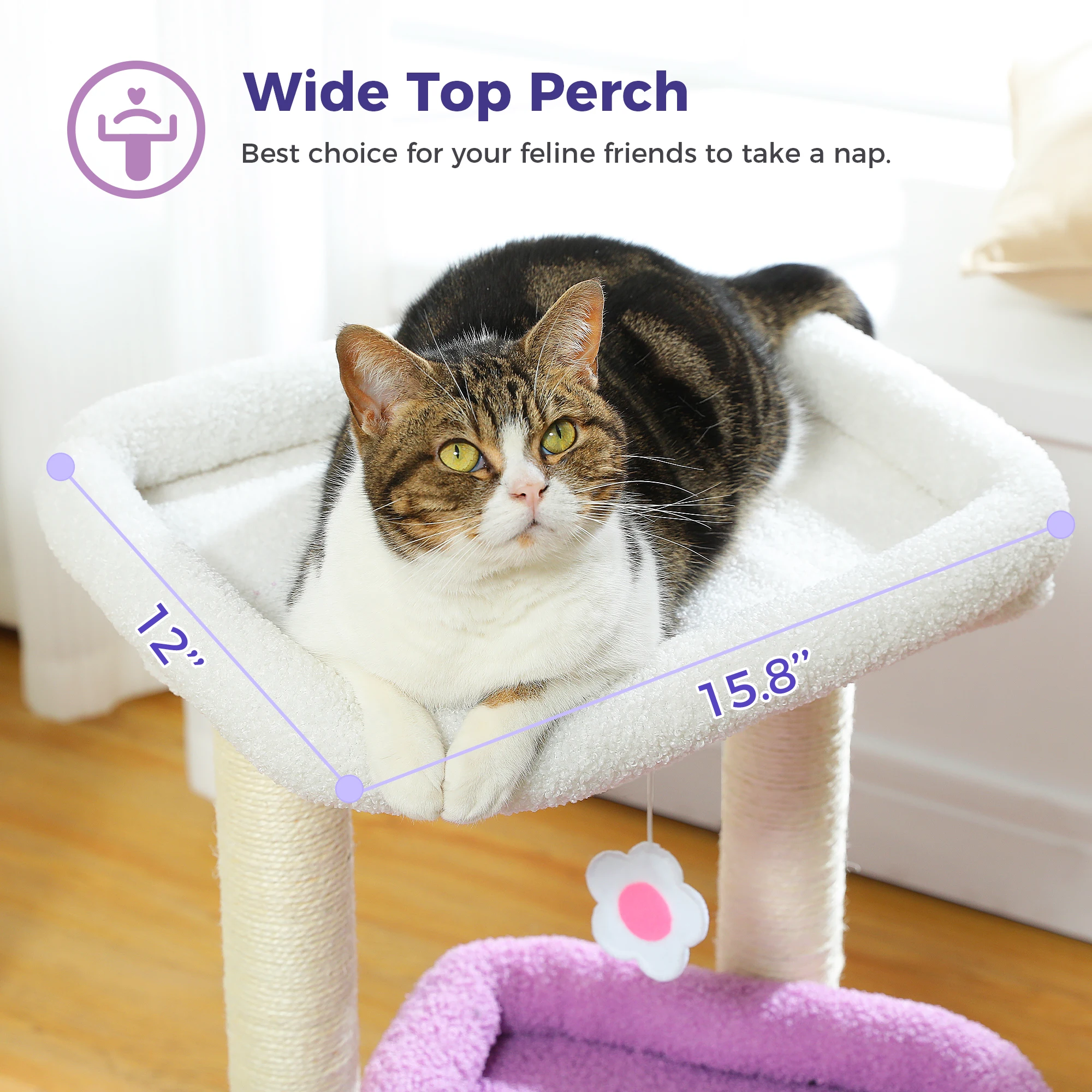 Comodidad lujosa: Todo el árbol para gatos está forrado con una tela lujosa y aterciopelada que agrega un toque de lujo y comodidad para que su pequeño gato se descanse y siesta.