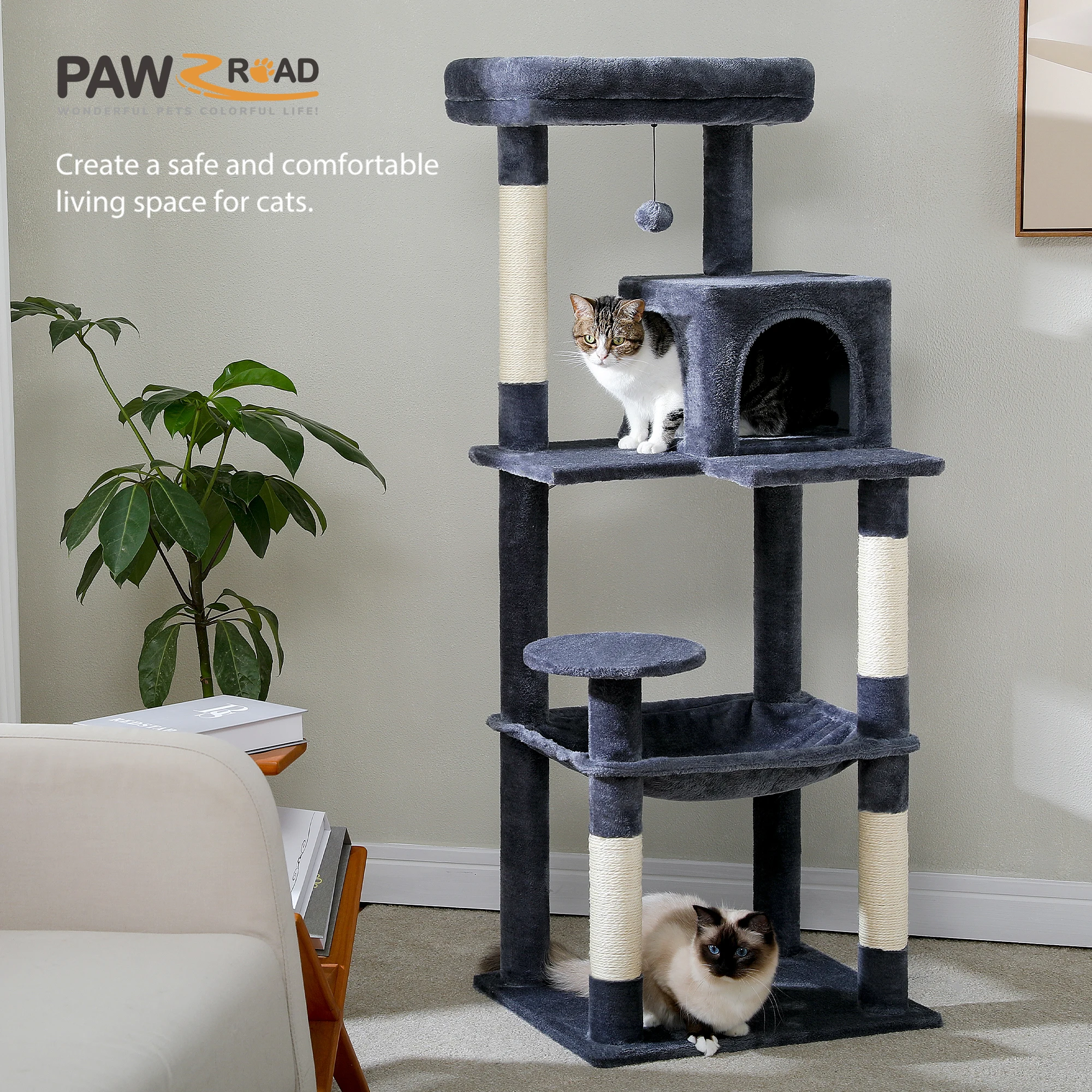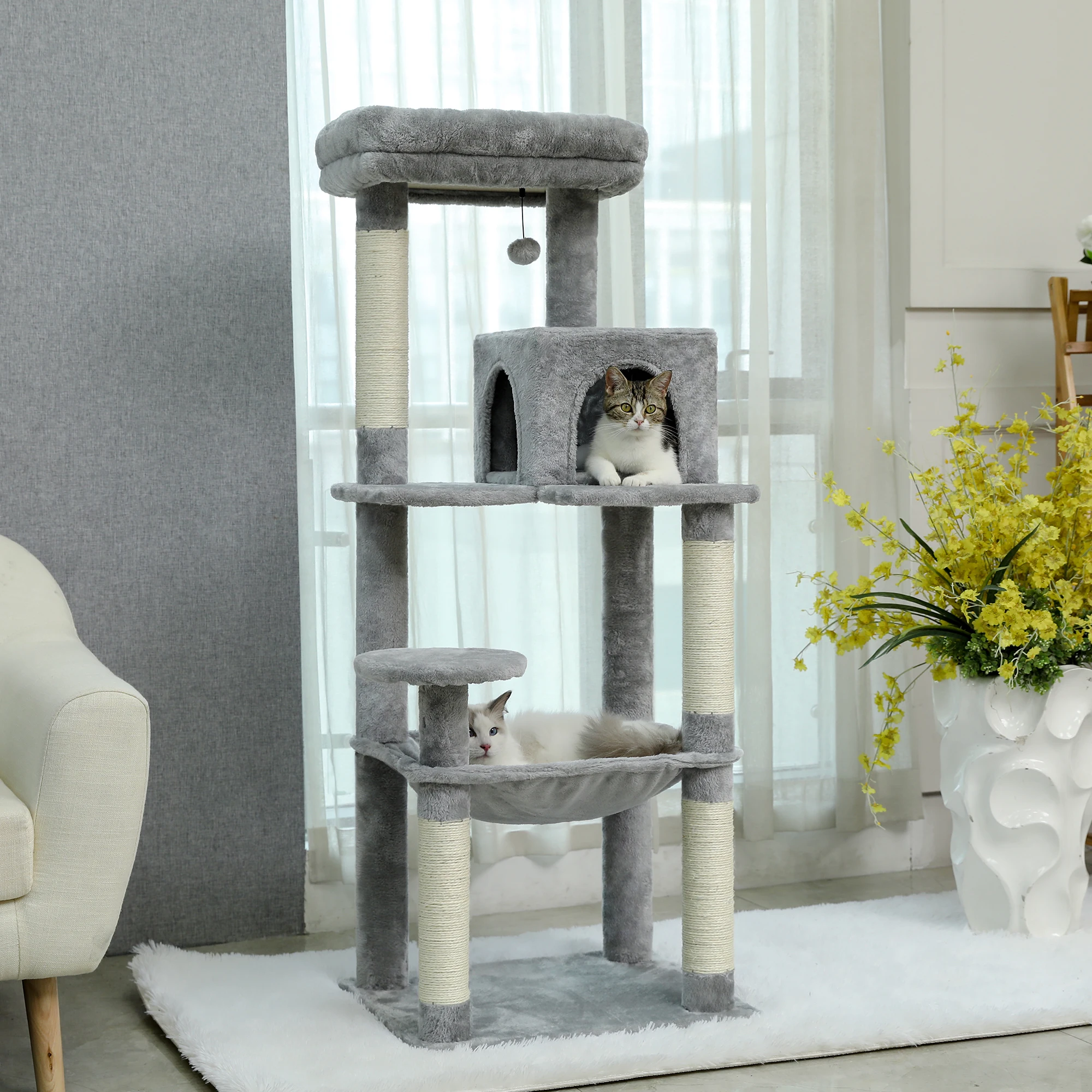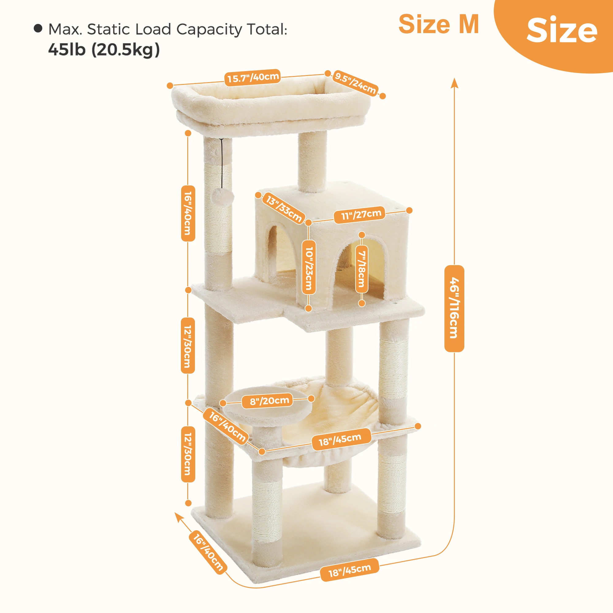 Árbol para gatos para la familia de varios gatos:Cat Tree de 45,7" está diseñado para acomodar varios gatos, brindándoles un amplio espacio para jugar, descansar y explorar.