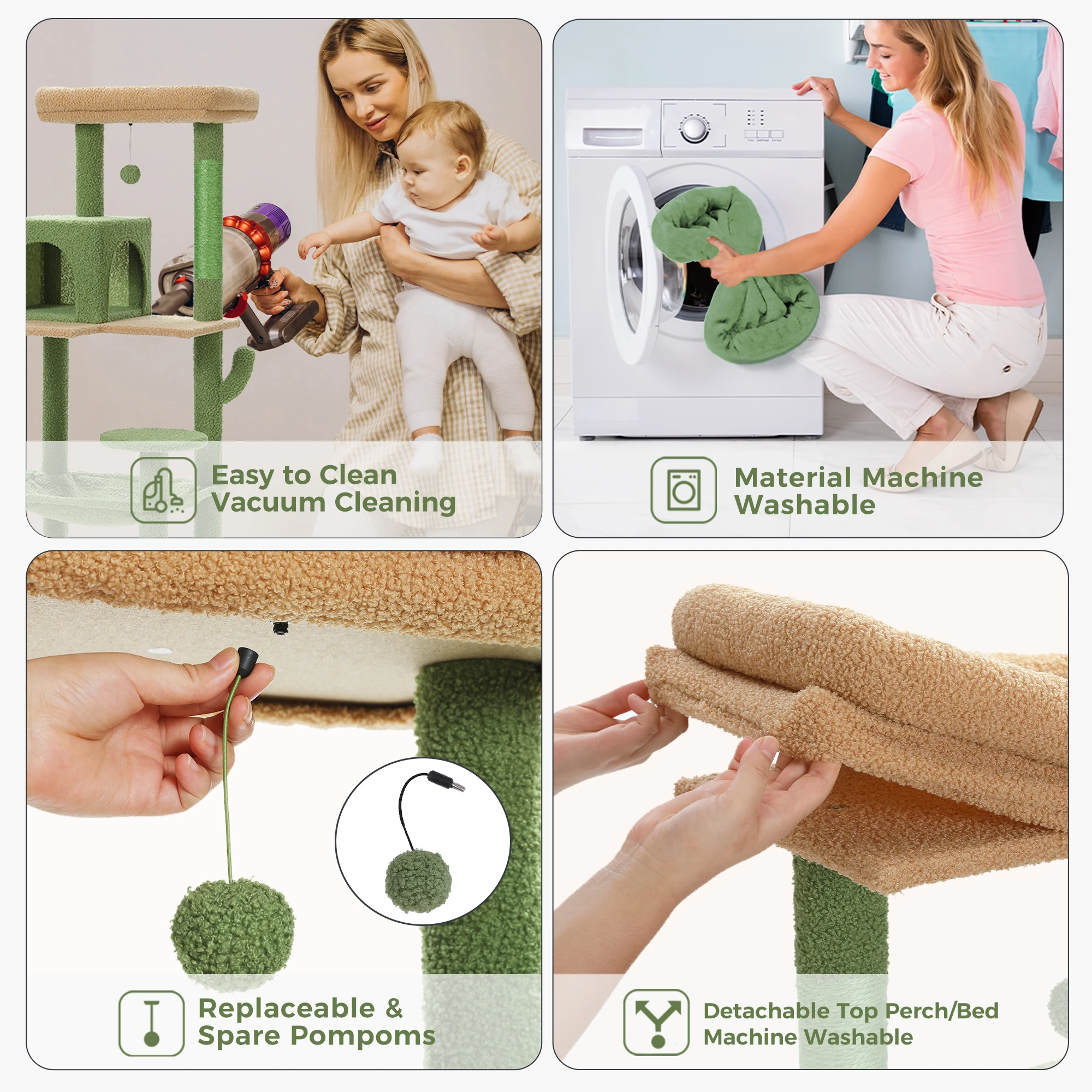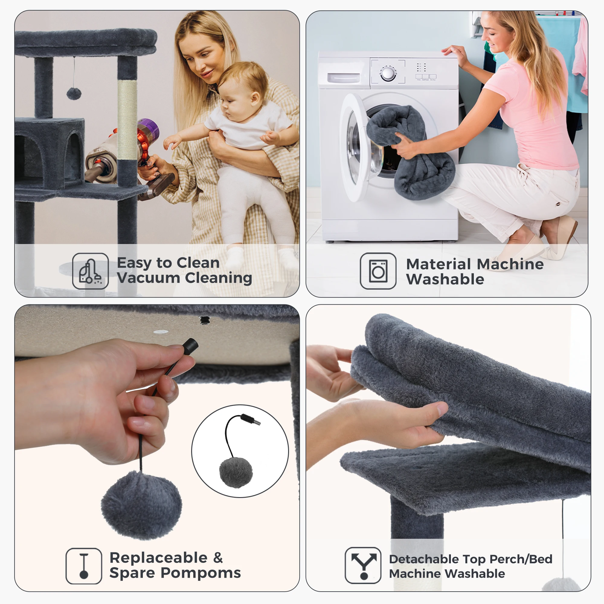 Fácil de montar y limpiar:El montaje de este árbol para gatos es rápido y sin complicaciones gracias a su resistente marco de metal e instrucciones claras.Los cojines de felpa extraíbles y lavables garantizan una fácil limpieza y mantenimiento, manteniendo el árbol para gatos fresco e higiénico.