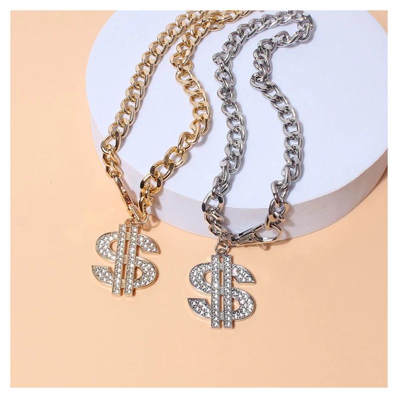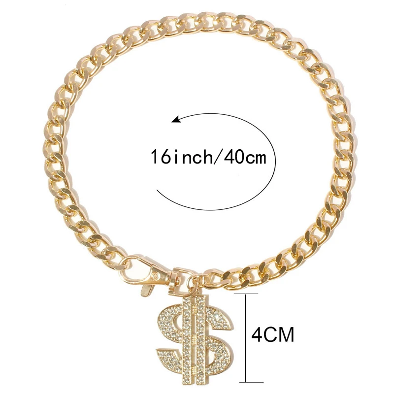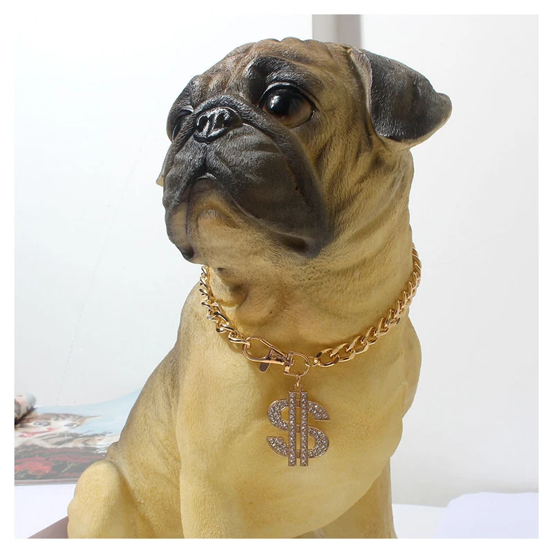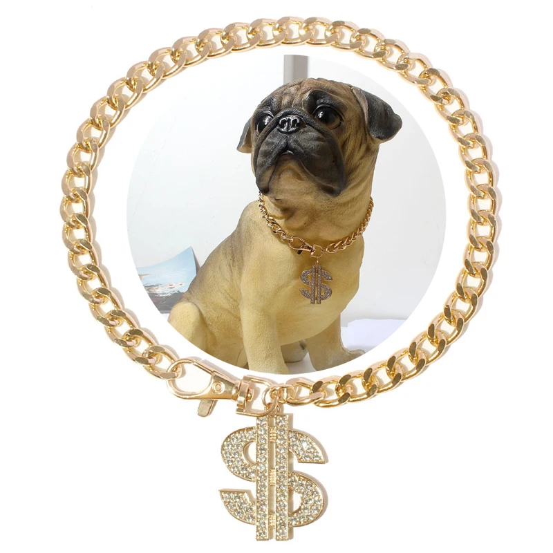 Luxury Gold Plated Dog Chain Metal Dollars Pendent Collar for Dogs French Bulldog Fashion Jewelry Necklace Pet Accessories