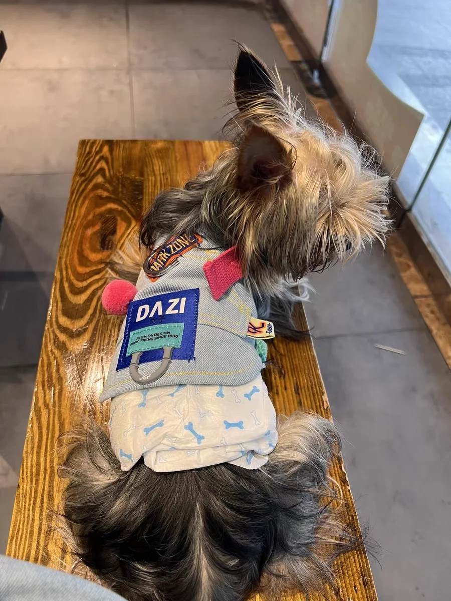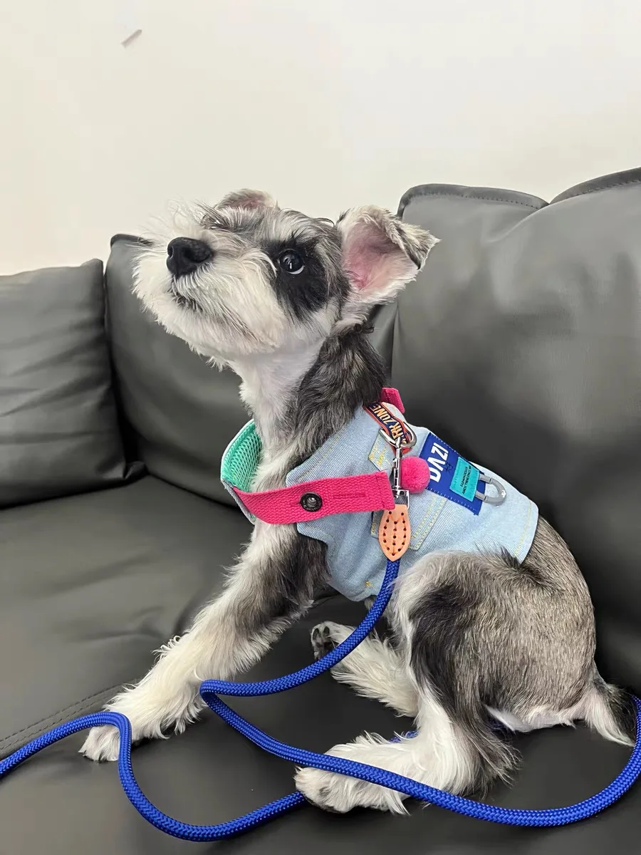 Arnés de lujo para mascotas, tirantes de mezclilla para perros de verano para Schnauzer Pomeranian Teddy, mochila ajustable para viajes y paseos para mascotas