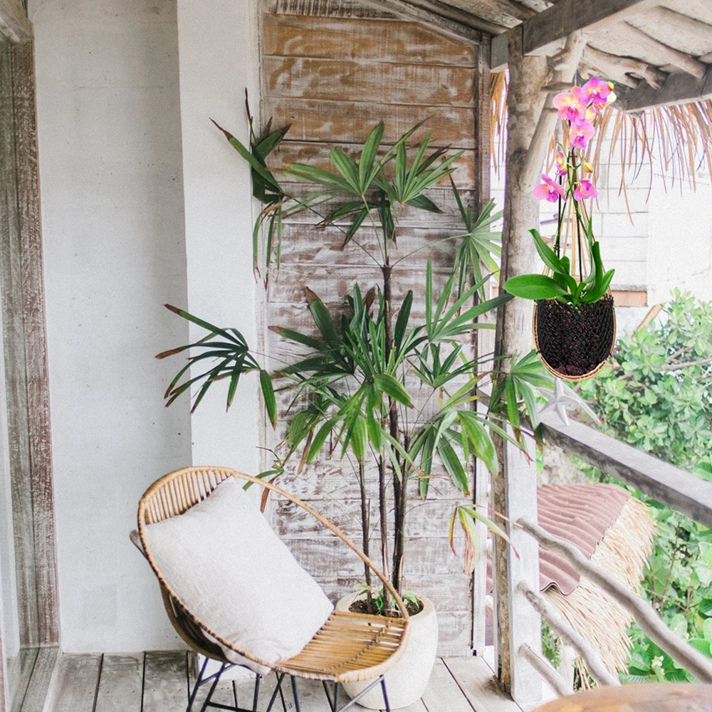 Buena transpirabilidad: las cestas colgantes de bambú y la malla de plástico flexible son transpirables, lo que permite que el flujo de aire y la luz solar lleguen a las raíces, lo que permite que las orquídeas crezcan de forma saludable y vigorosa.