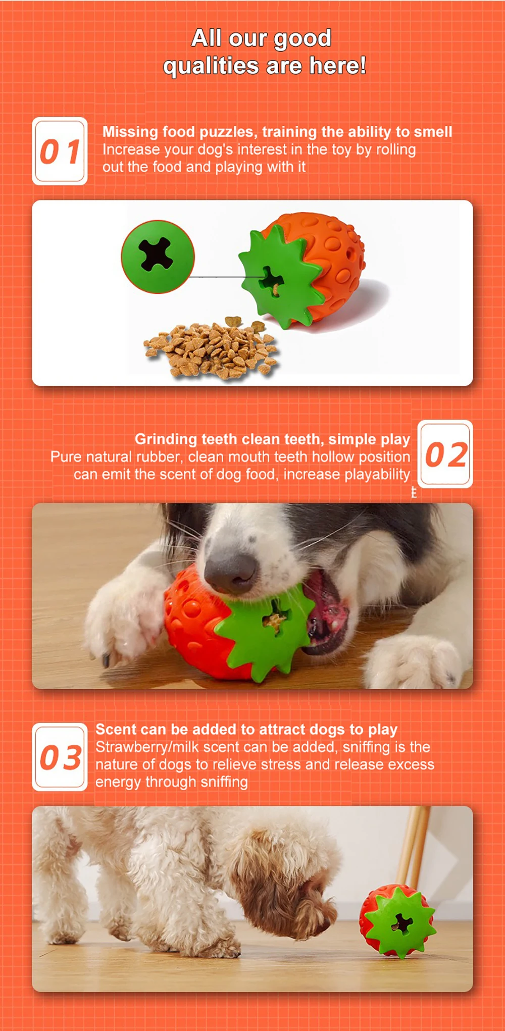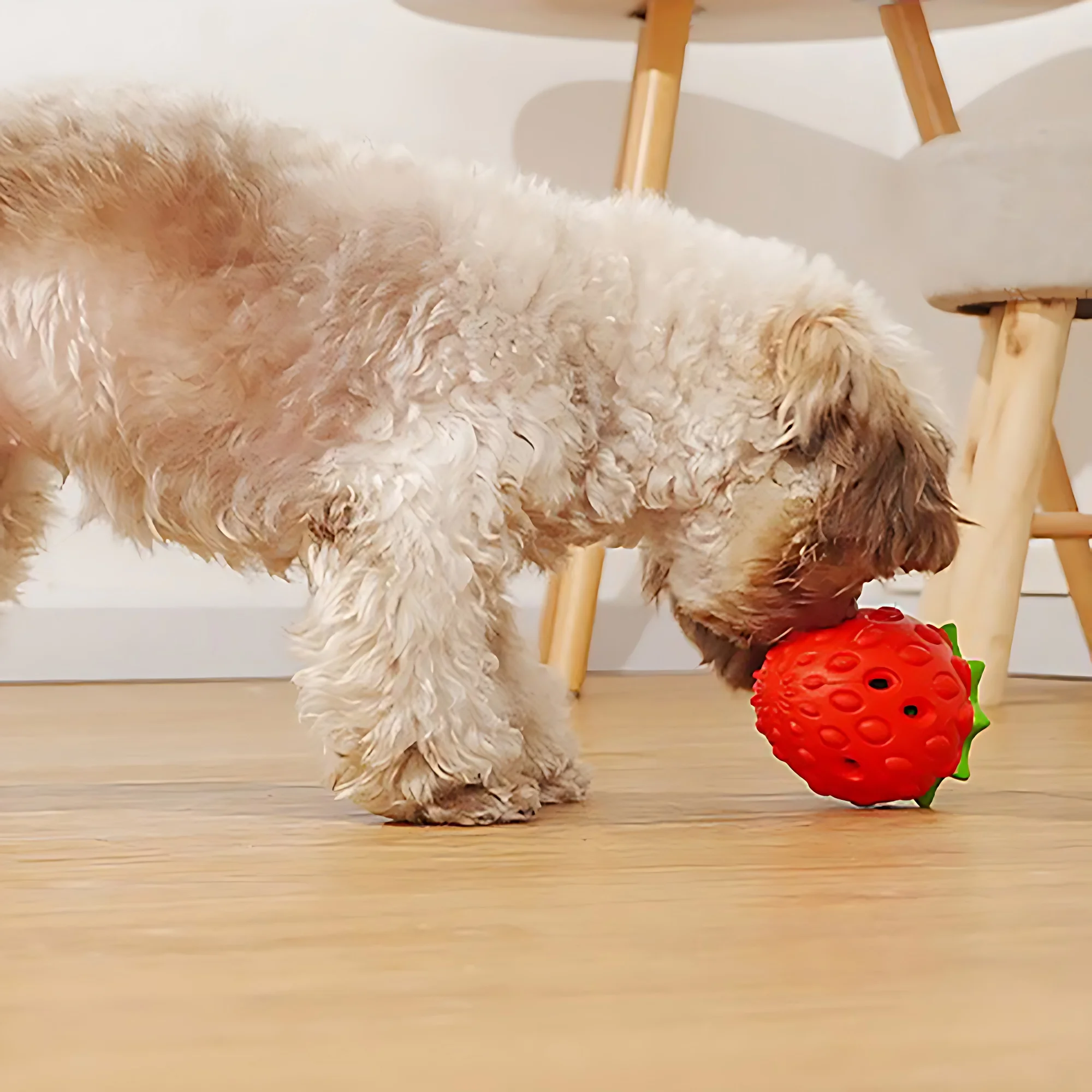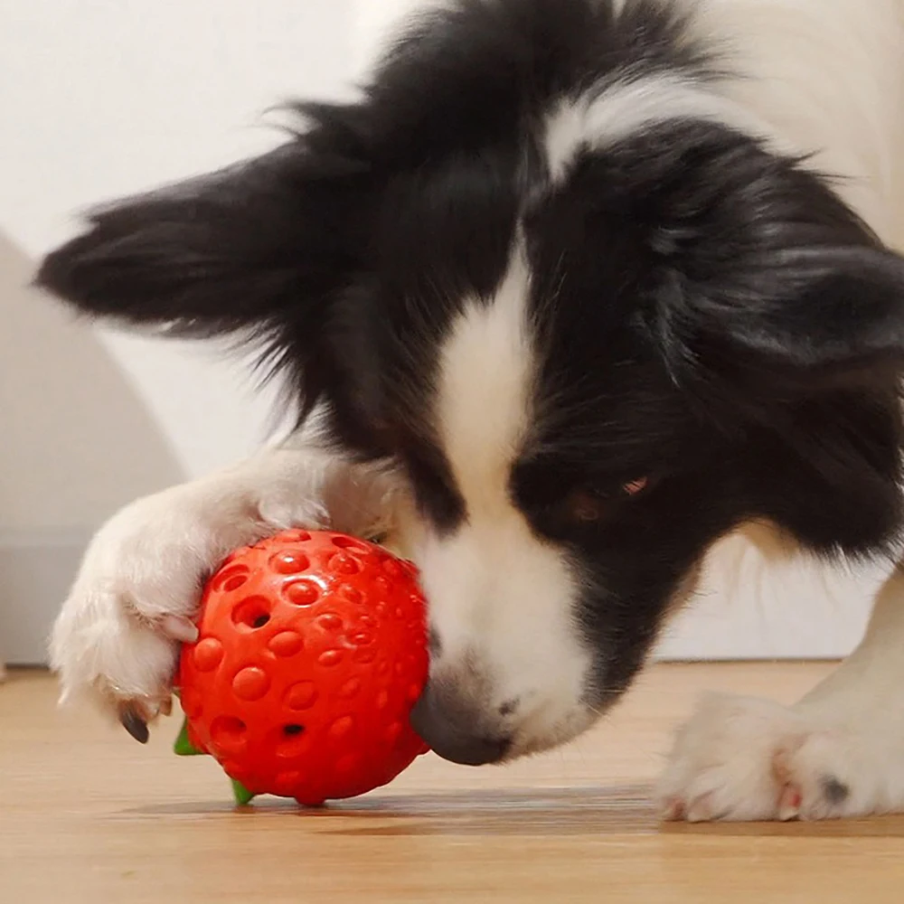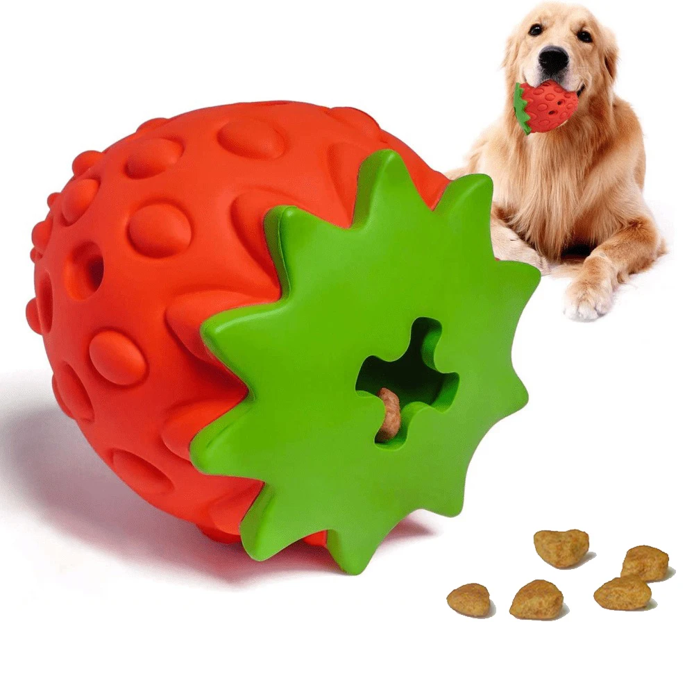 MADDEN juguetes para masticar, juguete de goma Natural con forma de fresa para fugas de alimentos, dispensador de alimentos duradero y ecológico, juguete para perros