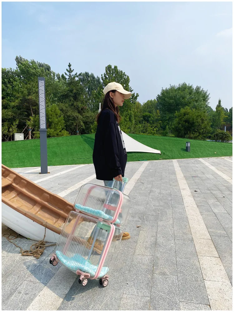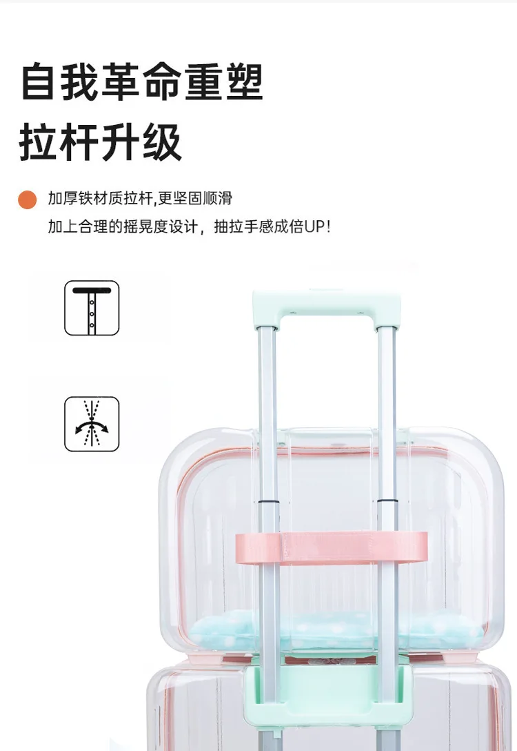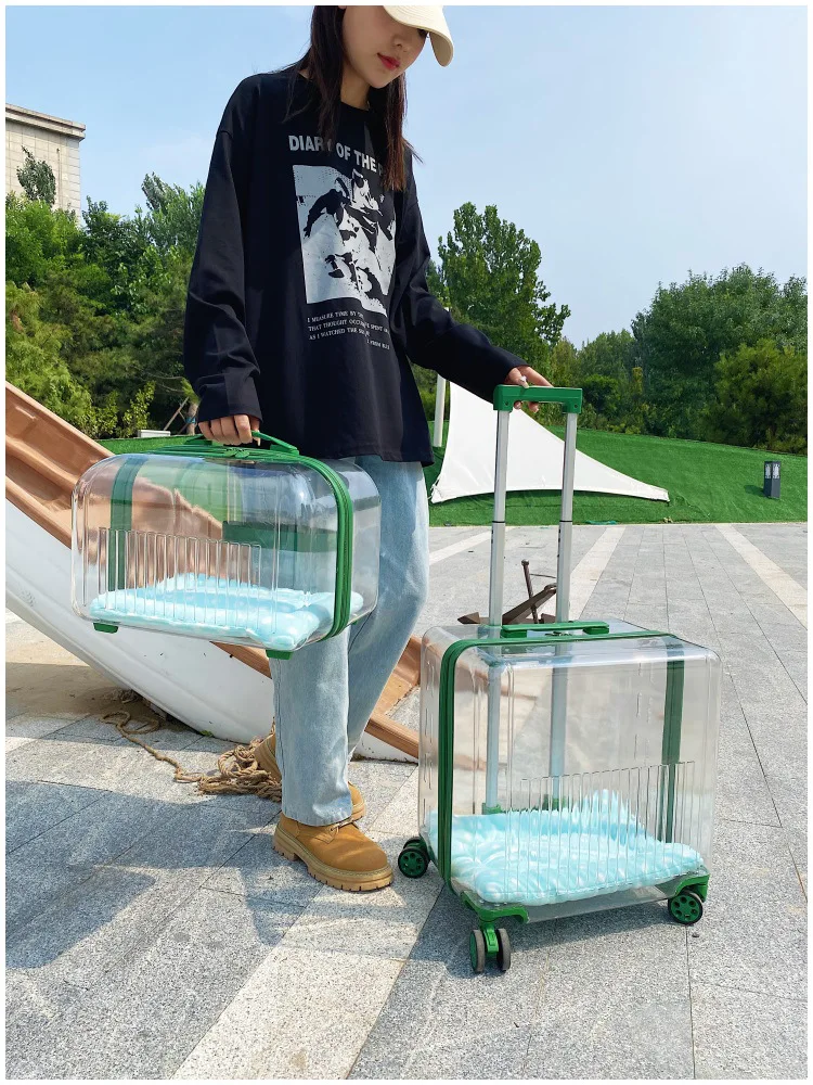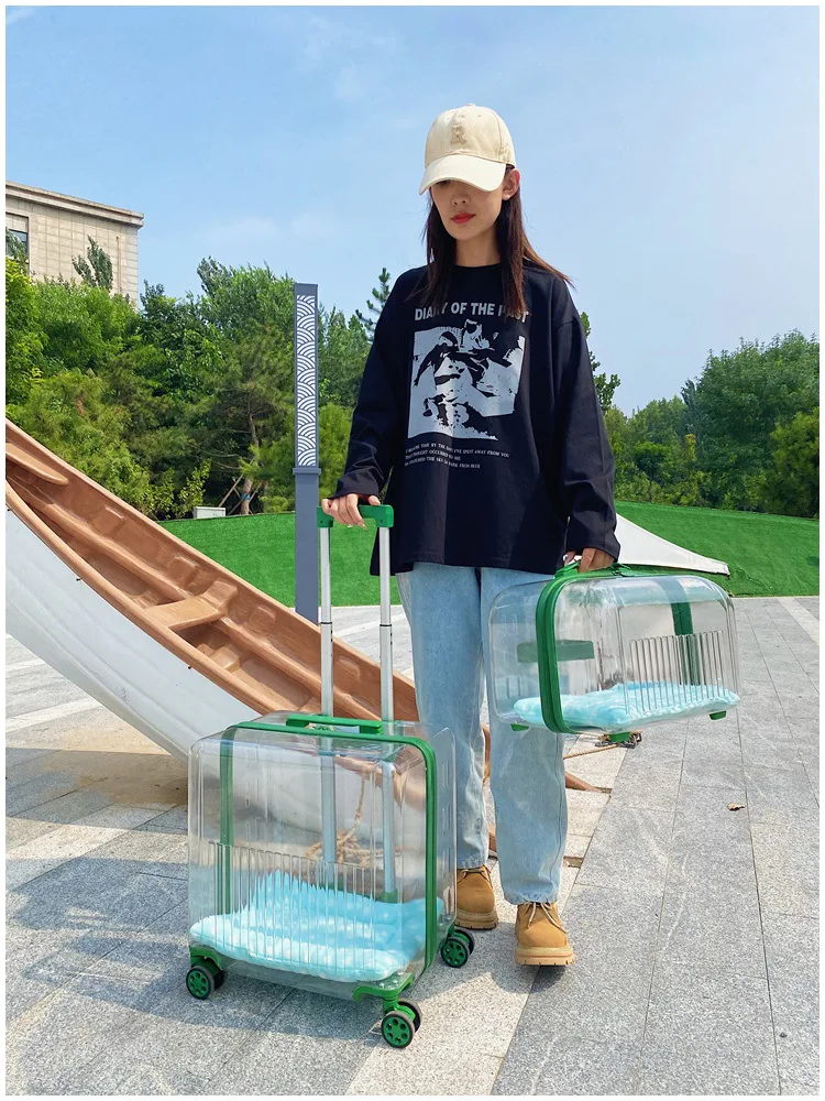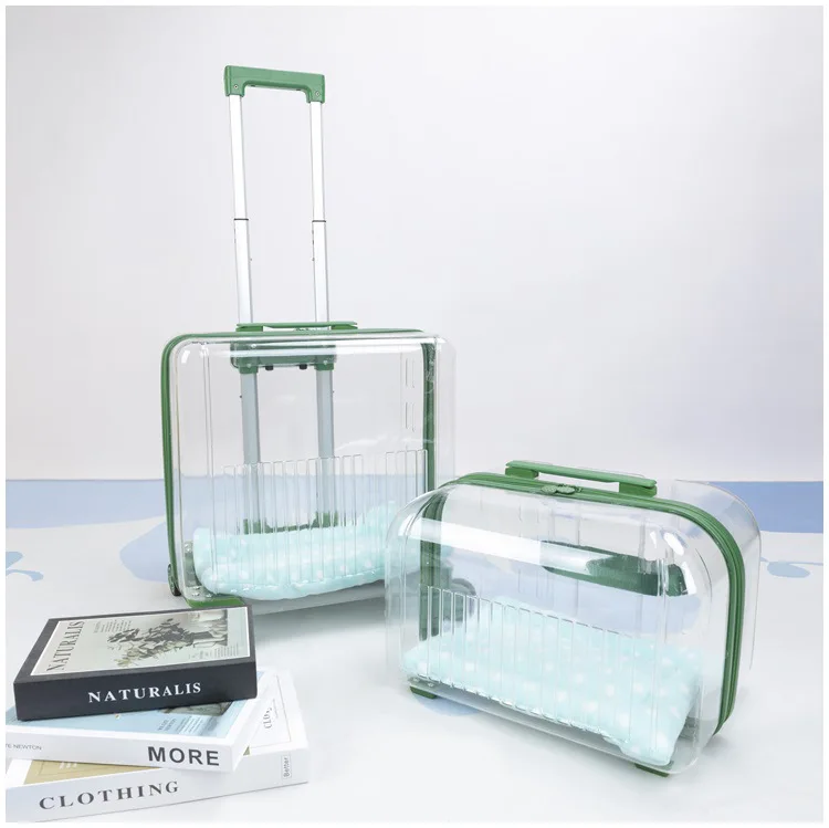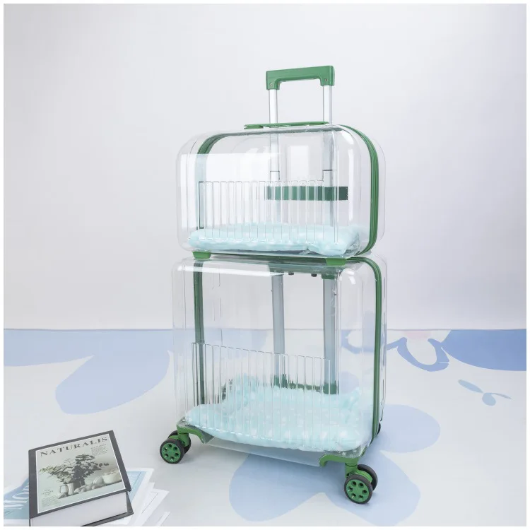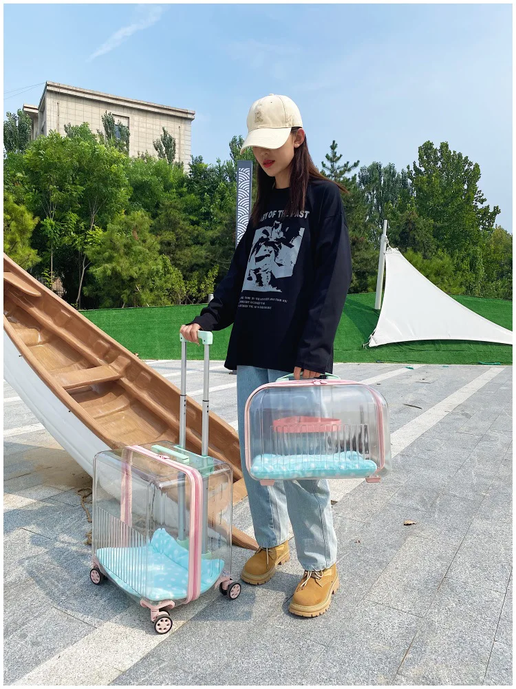 Maleta transparente con ruedas para mascotas, bolsa para gatos, cómoda para salir, maleta de doble capa para dos o tres gatos y perros, transpirable, de gran capacidad