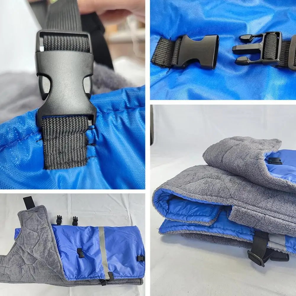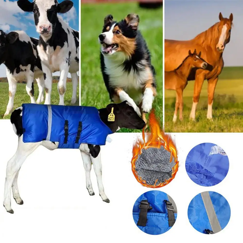 This versatile calf jacket is suitable for horses, sheep, alpacas, and large dogs. Easy to put on and take off, it features soft plush and cotton padding inside. With its high, medium, and low temperature settings, this jacket ensures your animal stays comfortable all day. The reflective strip enhances visibility at night, keeping your animal safe.
