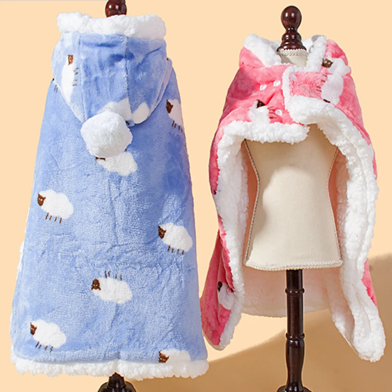 Manta con capucha para mascotas, abrigo de algodón grueso, cálido, Otoño Invierno, perro, gato, uso especial, funda envolvente suave y acogedora para mascotas
