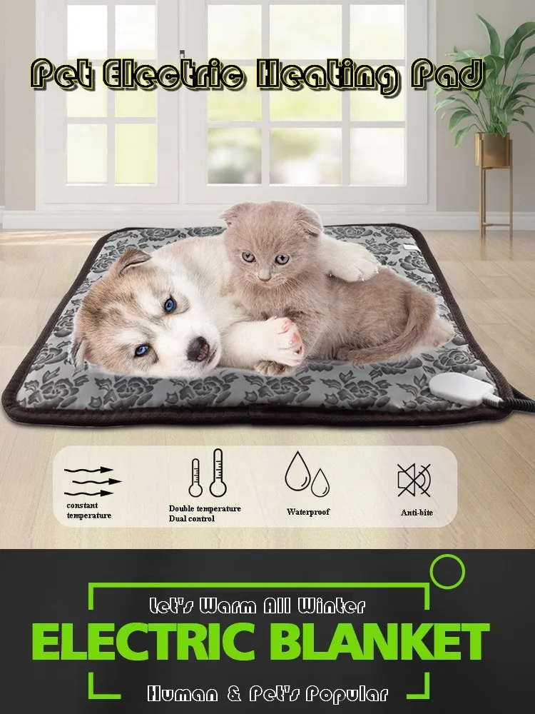 Manta eléctrica para mascotas, almohadilla calentadora de invierno, nido calefactable para perros y gatos, calentador impermeable, protección contra apagado, cama resistente a mordeduras