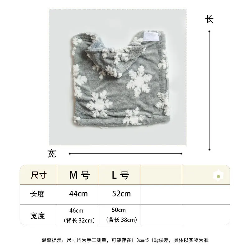 Manta de felpa de otoño e invierno para mascotas, capa aislante portátil para perro, pijamas, manta, abrigo de copo de nieve, manta de felpa para mascotas, ropa para cachorros