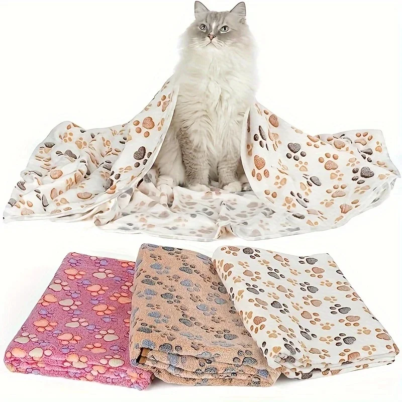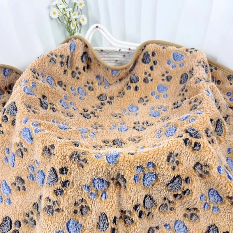 Se puede utilizar como manta o tapete para cama para mascotas, muy útil.Diseño moderno con estampado de patas, con ribete de algodón de costura fina.