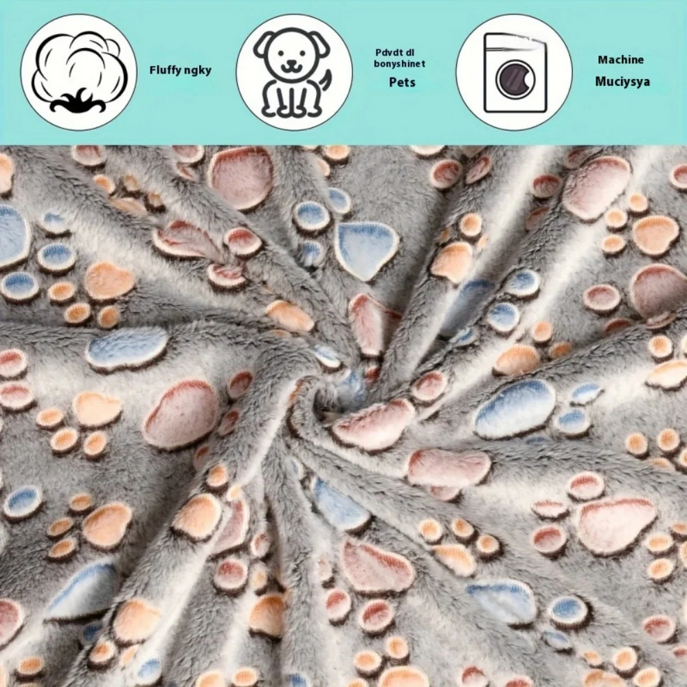 Se puede utilizar como manta o tapete para cama para mascotas, muy útil.Diseño moderno con estampado de patas, con ribete de algodón de costura fina.