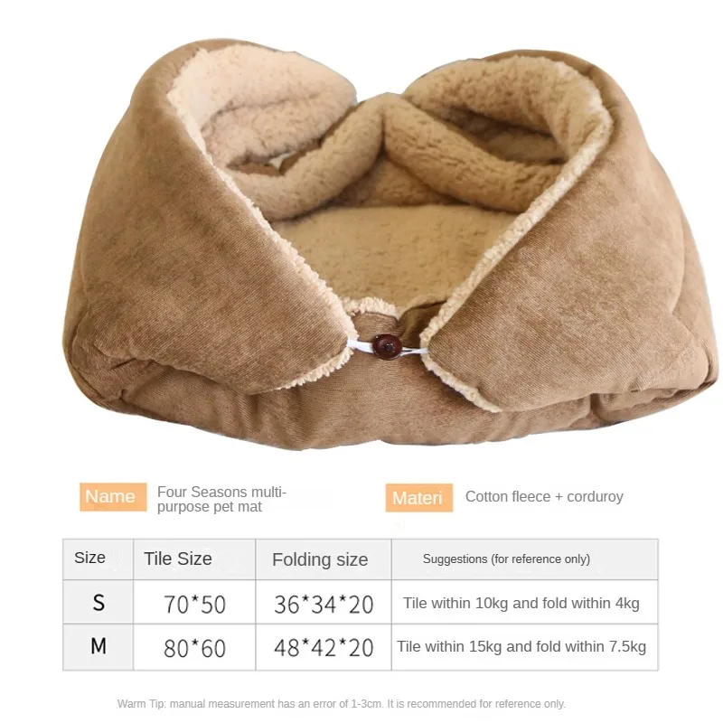 Manta para mascotas, nido grueso y cálido, perrera de felpa para perros, estera gruesa para mascotas, cama plegable de doble uso para gatitos, estera para dormir para gatos, lavable