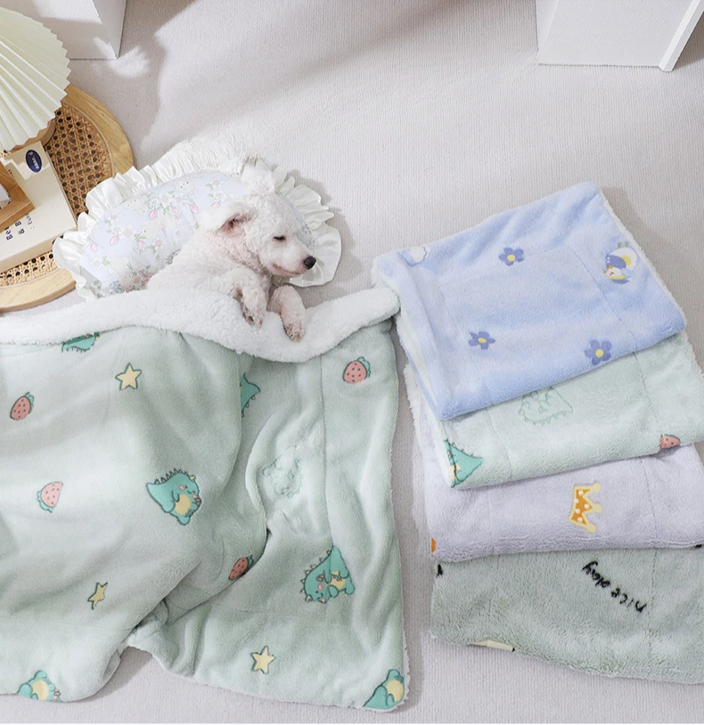 Manta suave y cálida para perro, estera polar para nido de cachorro y gatito, protección de cama, manta estampada bonita para gato lavable para interiores, suministros para mascotas, invierno