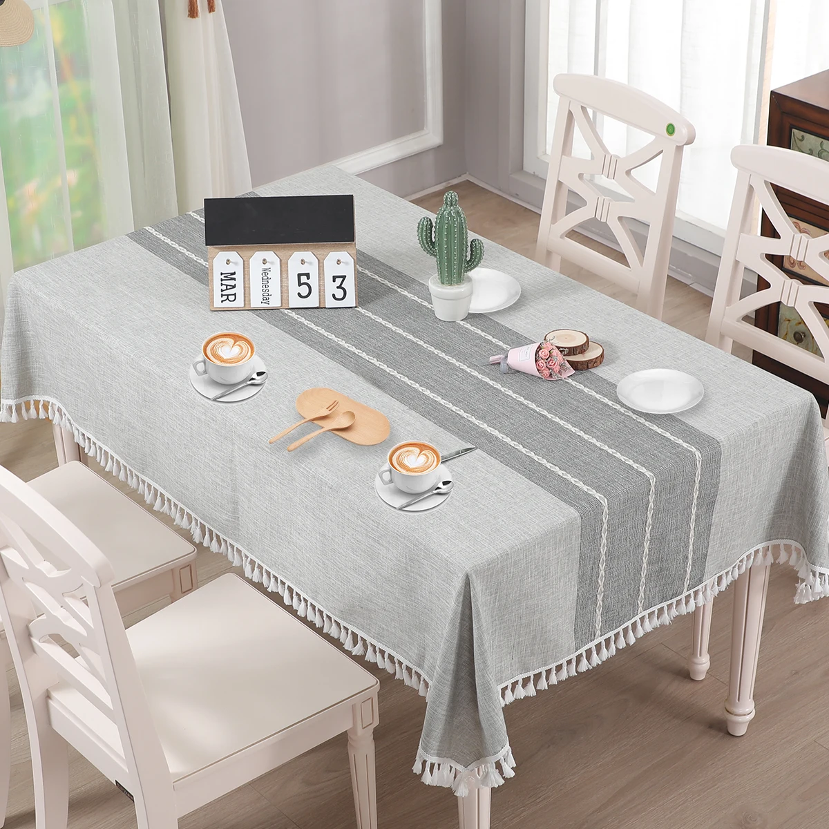 Nuestros manteles combinan elegancia y durabilidad para mejorar su experiencia gastronómica.Este mantel presenta tonos suaves y delicados y elementos clásicos de rayas, con una estética minimalista que combina a la perfección con cualquier decoración.El encantador diseño de borla blanca a lo largo del borde añade un toque divertido a la experiencia gastronómica, creando un ambiente cálido y romántico.