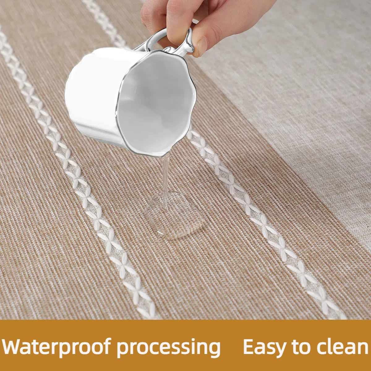 Nuestros manteles tienen un excelente rendimiento impermeable gracias a su especial tratamiento impermeable.Como se muestra en la imagen, cualquier líquido que salpique la superficie se acumule rápidamente en lugar de sumergirse, protegiendo eficazmente su mesa de comedor de las manchas.Al mismo tiempo, este mantel está fabricado con materiales de alta calidad, cómodos y duraderos.Su textura suave proporciona un tacto atractivo y una excelente resistencia al desgaste, lo que garantiza que pueda mantener su estado original incluso después de un uso prolongado.