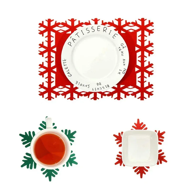 Manteles Individuales con tema navideño, tapete de fieltro con forma de copo de nieve, Mantel Individual antideslizante para mesa, decoración navideña para el hogar, adorno navideño 2024